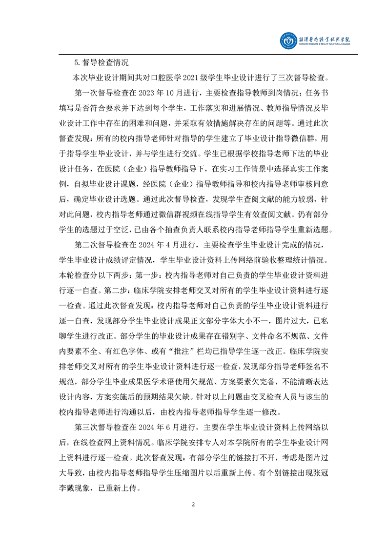口腔医学技术专业2021级学生毕业设计工作督导检查工作方案和督导检查情况
