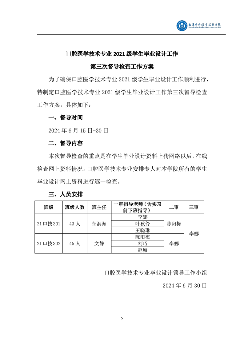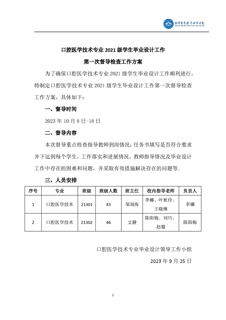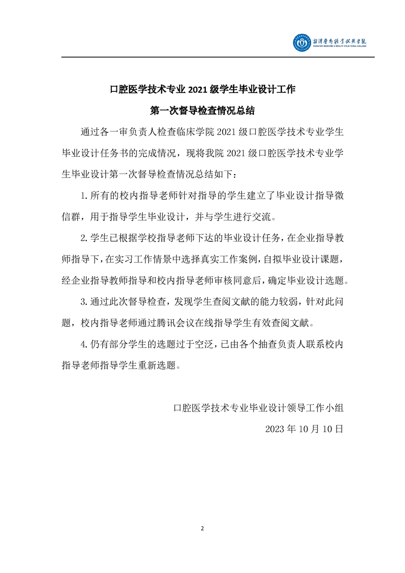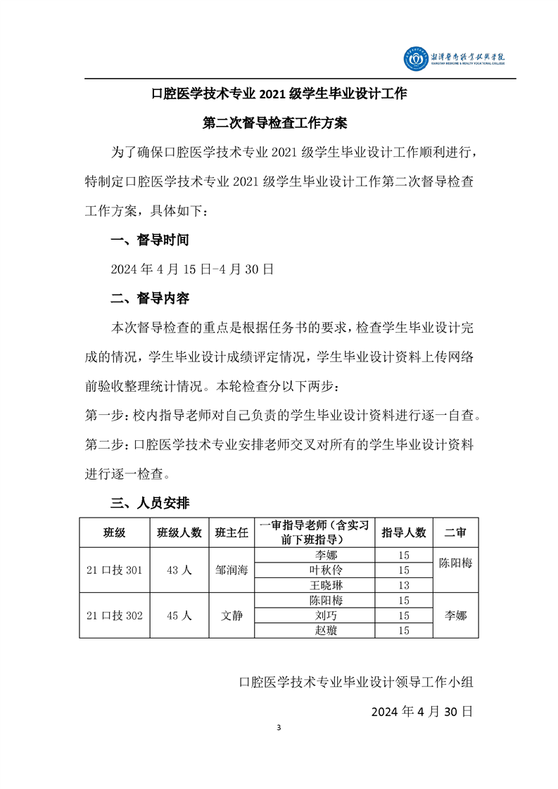 口腔医学技术专业2021级学生毕业设计工作督导检查工作方案和督导检查情况总结