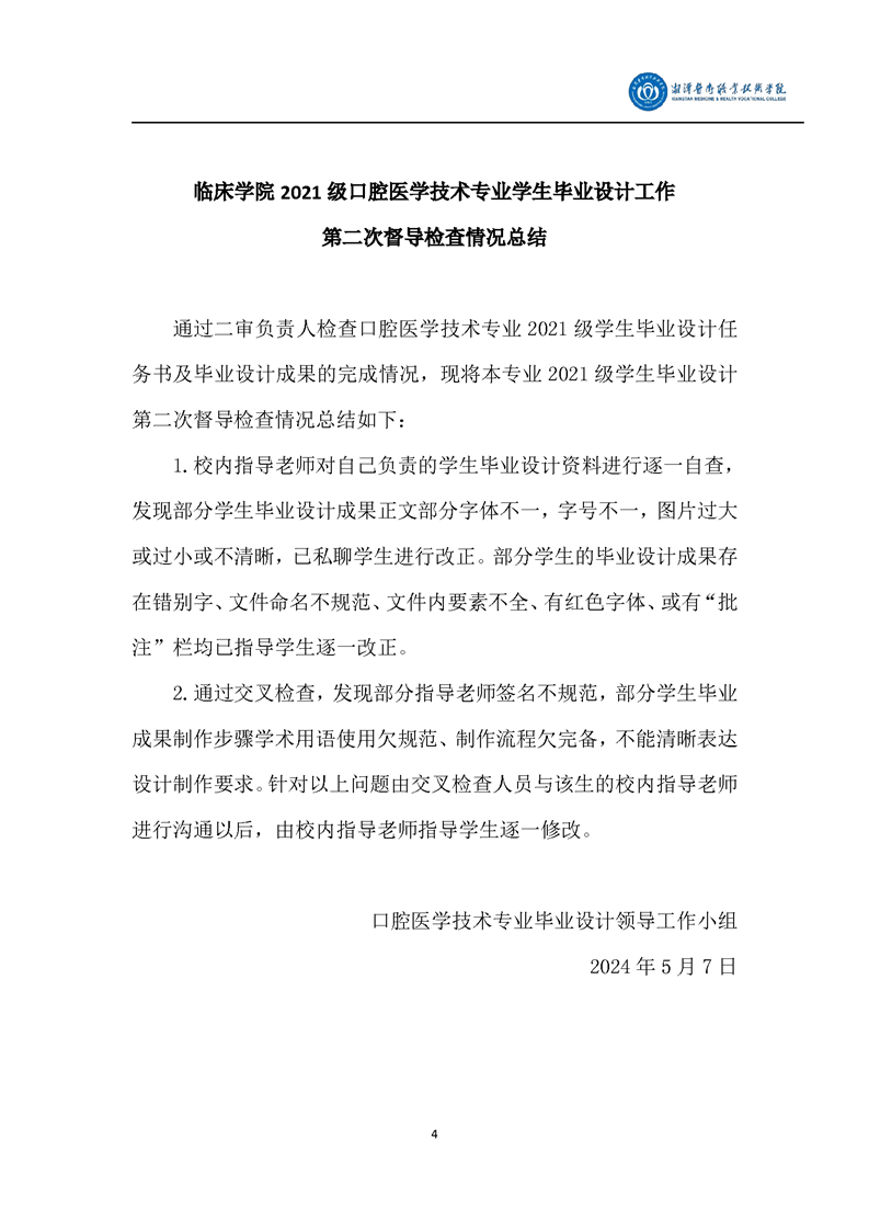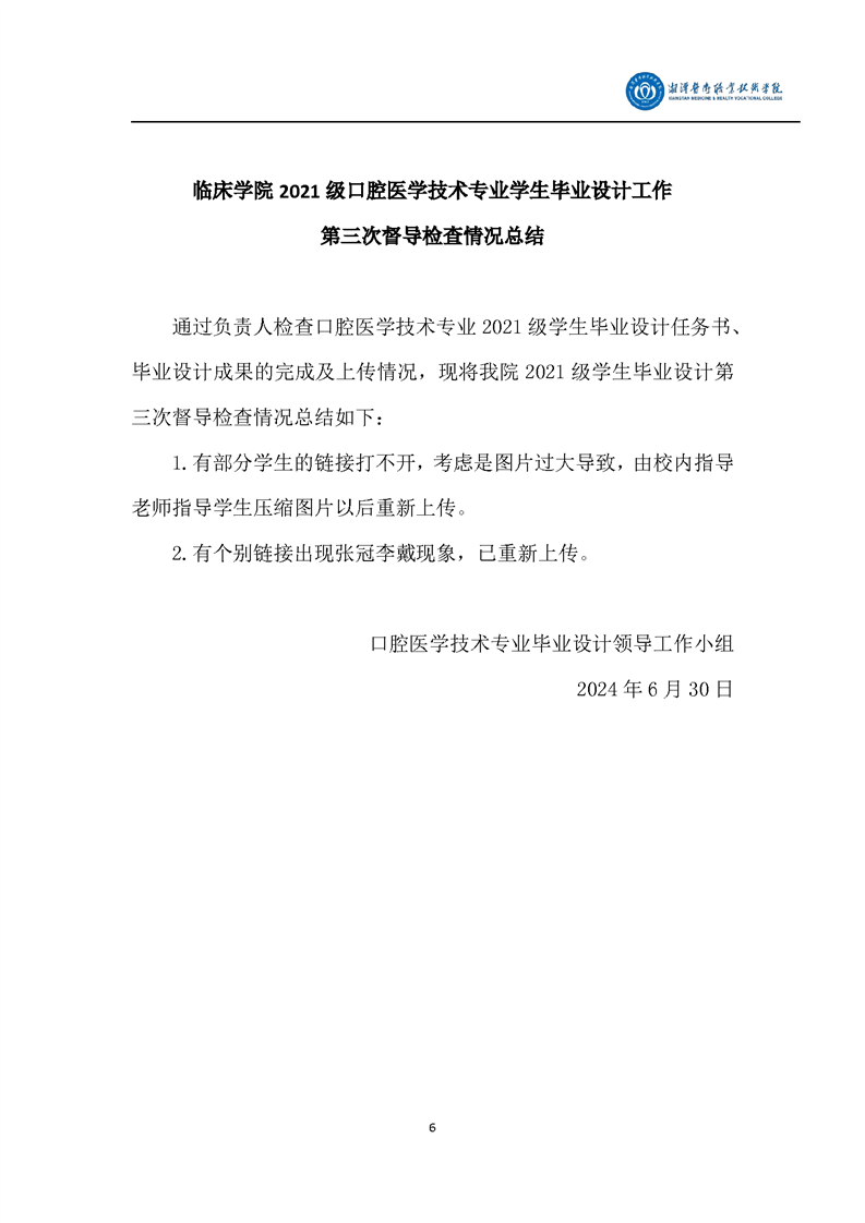 口腔医学2021级学生毕业设计工作督导检查工作方案和督导检查情况总结