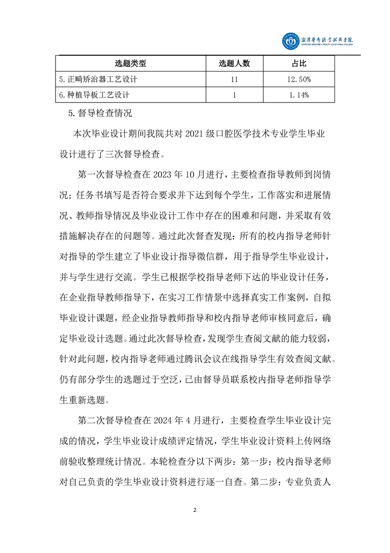 口腔医学2021级学生毕业设计工作督导检查工作方案和督导检查情况总结