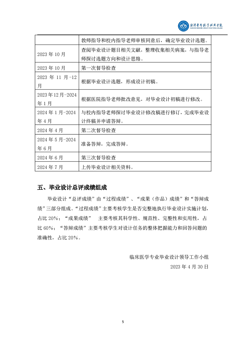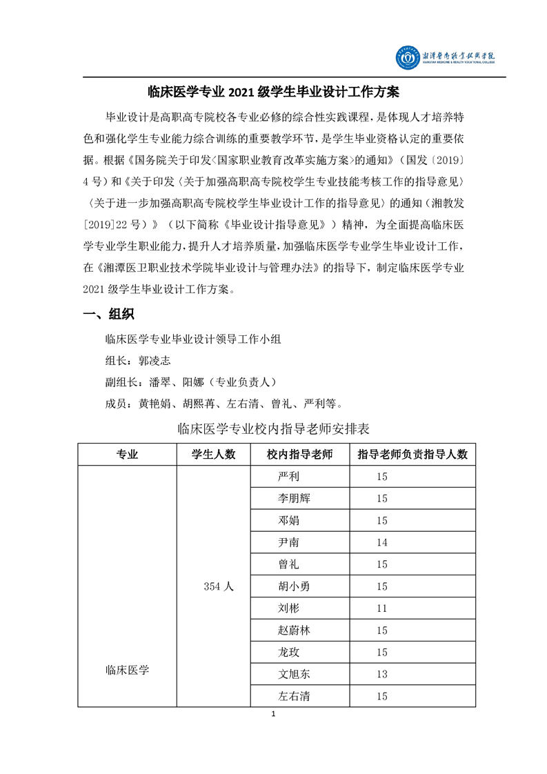 临床医学专业2021级学生毕业设计工作方案
