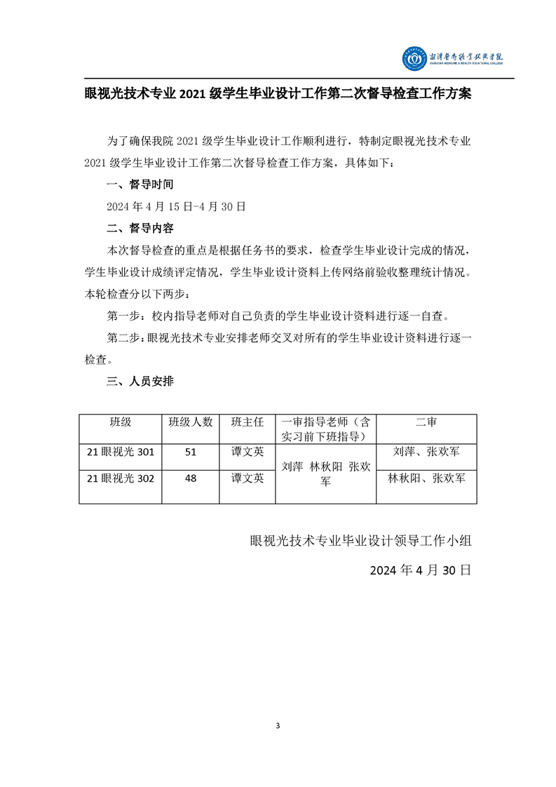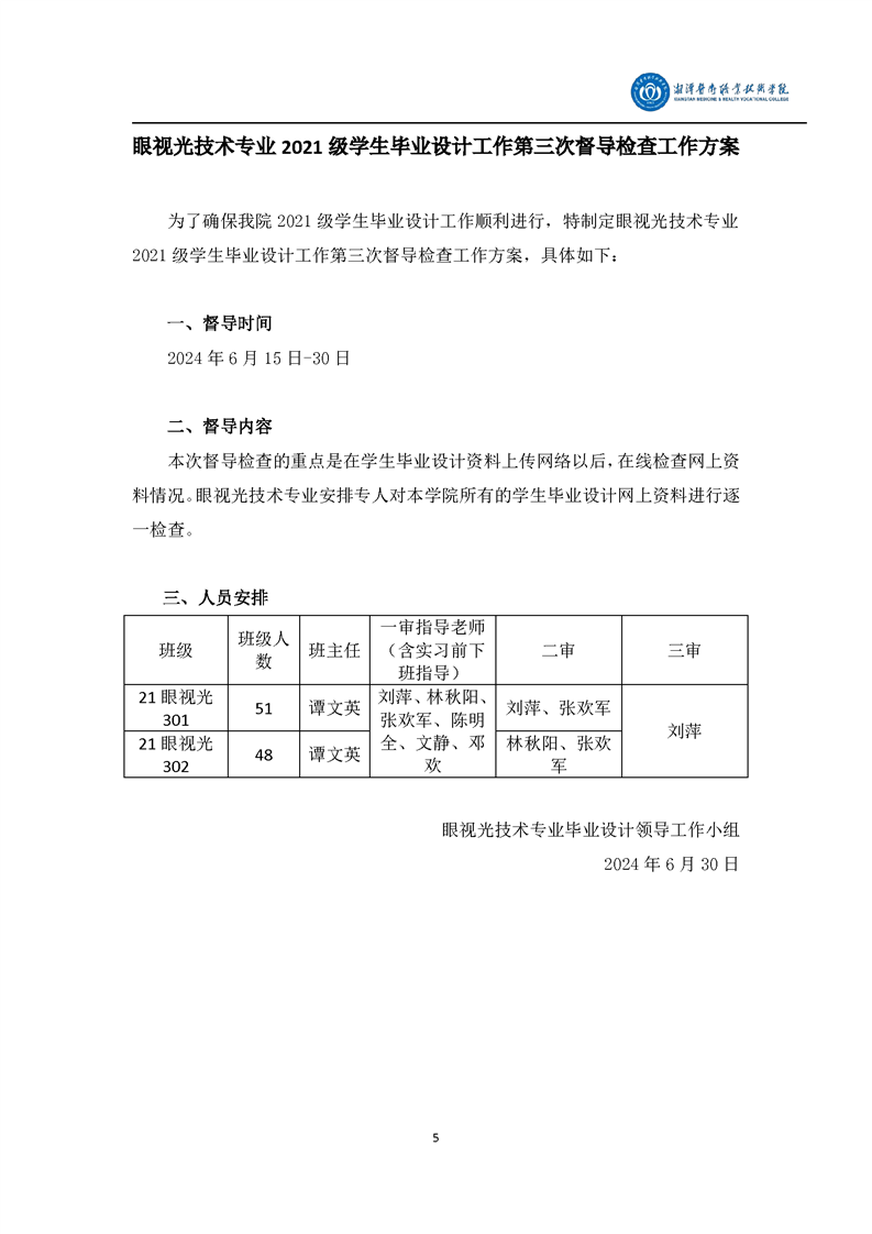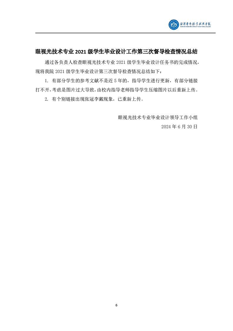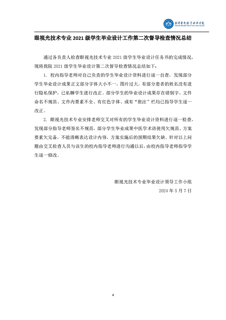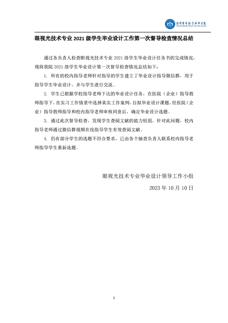 眼视光技术专业2021级学生毕业设计工作督导检查工作方案和督导检查情况总结