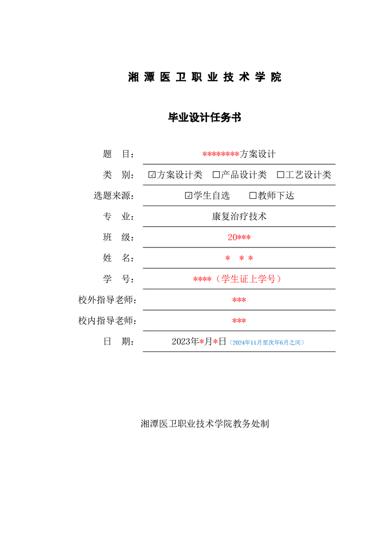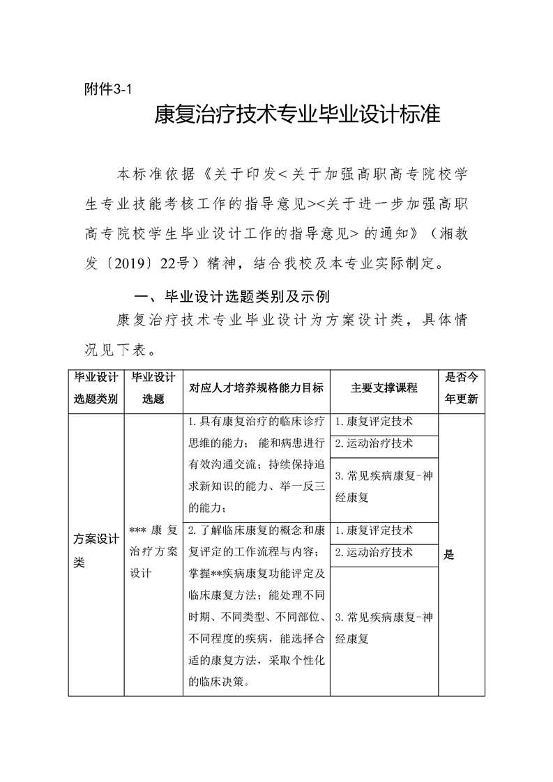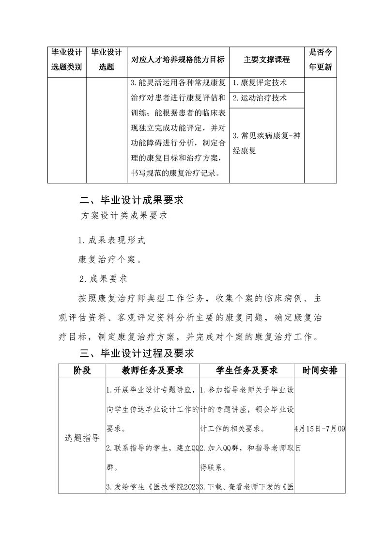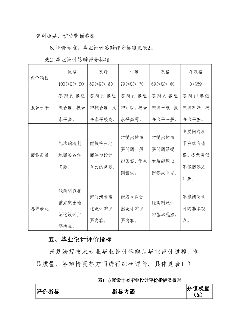 2021级康复治疗技术专业毕业设计标准