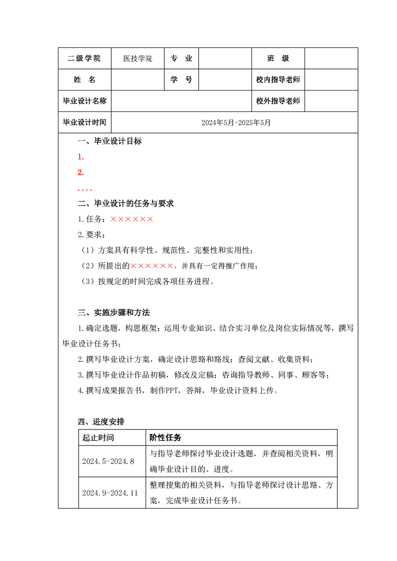 > 教务处 > (一)各专业毕业设计标准 > 3、医学技术学院