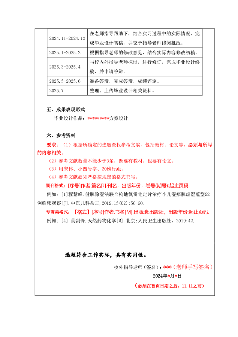 2021级中药学专业毕业设计标准