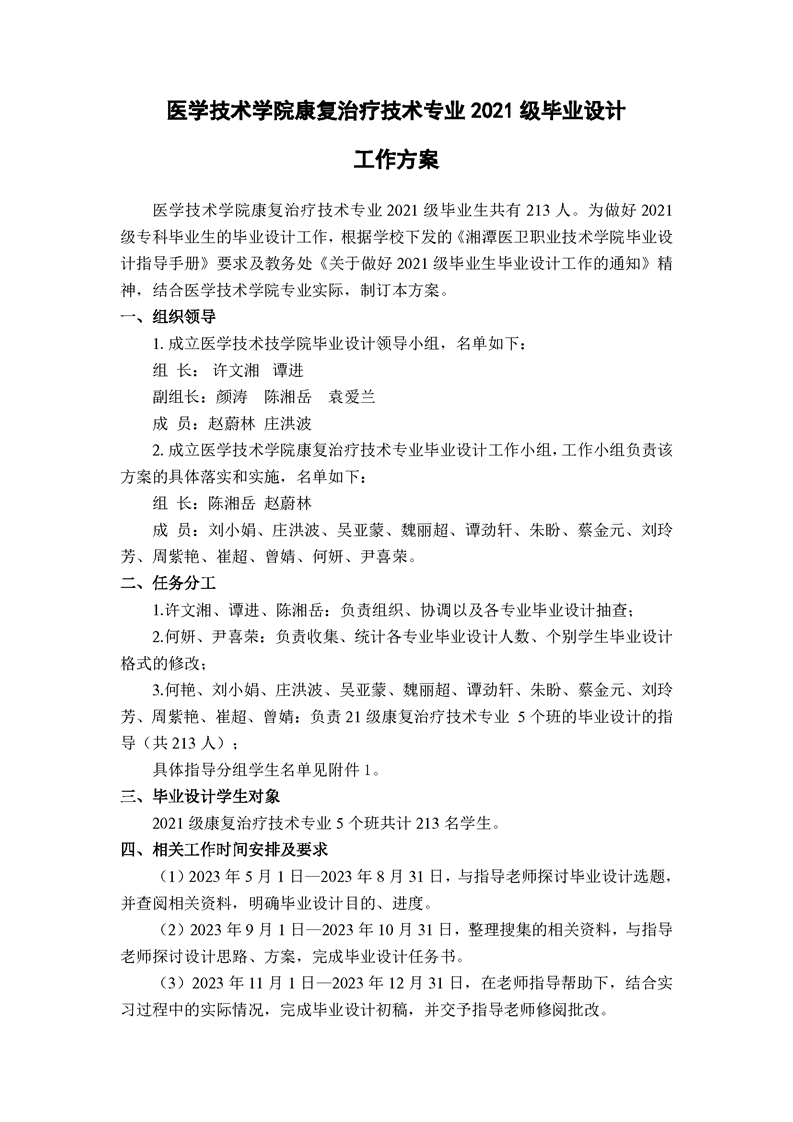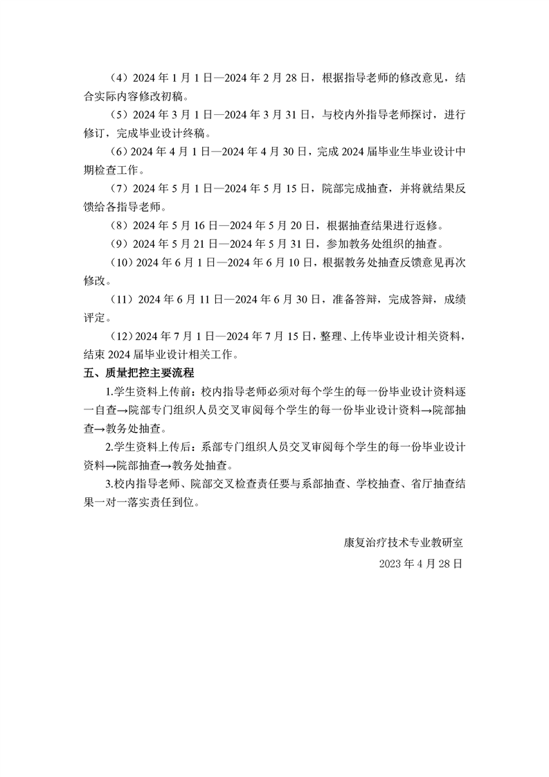 康复治疗技术专业2021级学生毕业设计答辩工作方案