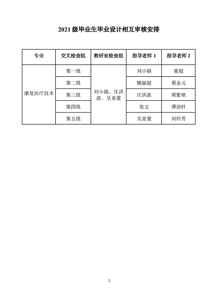 康复治疗技术专业2021级学生毕业设计答辩工作方案