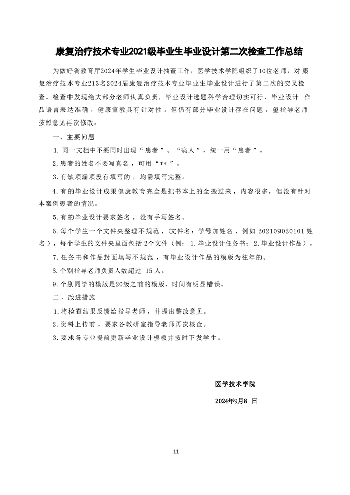 医学技术学院2021级学生毕业设计第2次督导检查情况总结