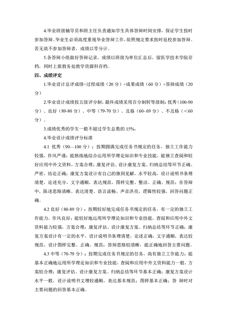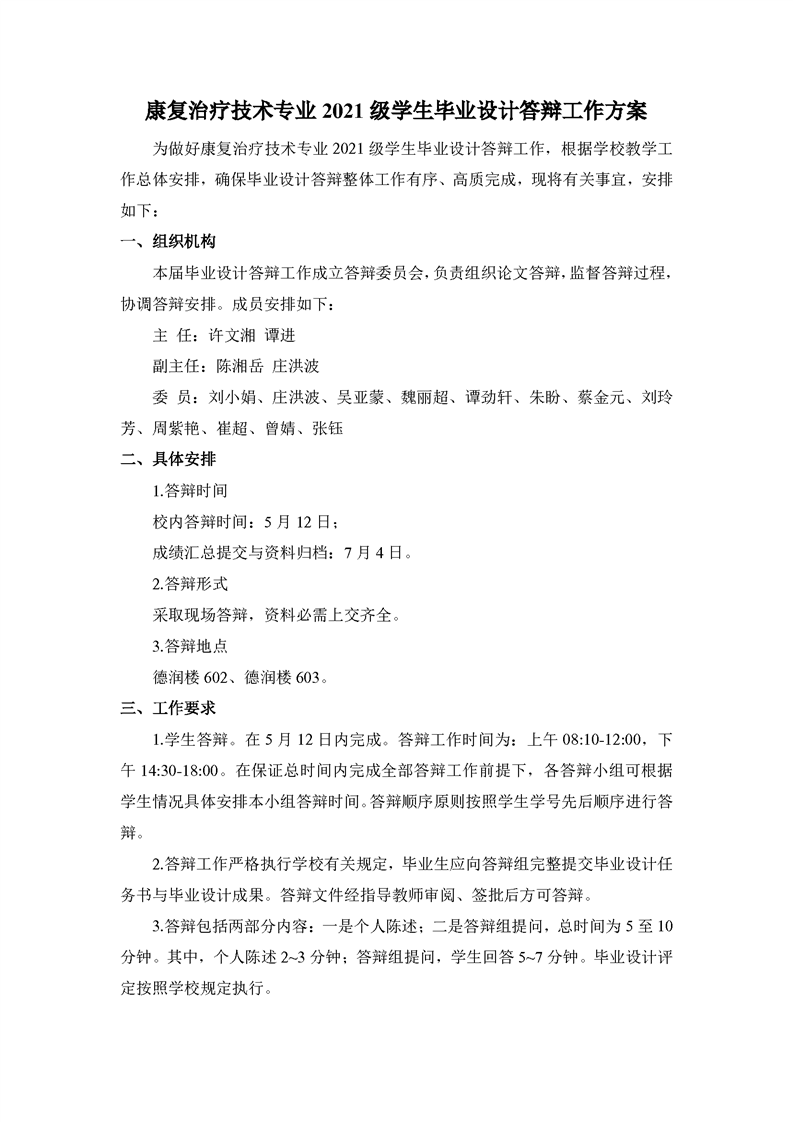 康复治疗技术专业2021级学生毕业设计答辩工作方案