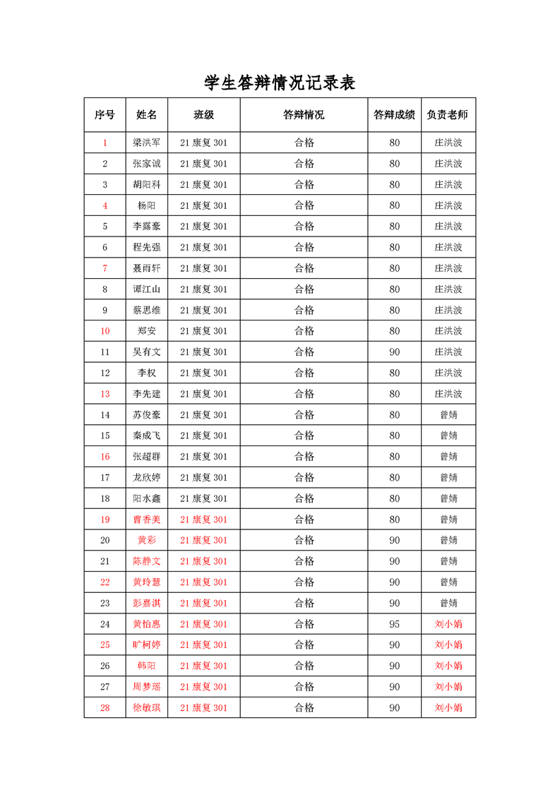 答辩成绩单