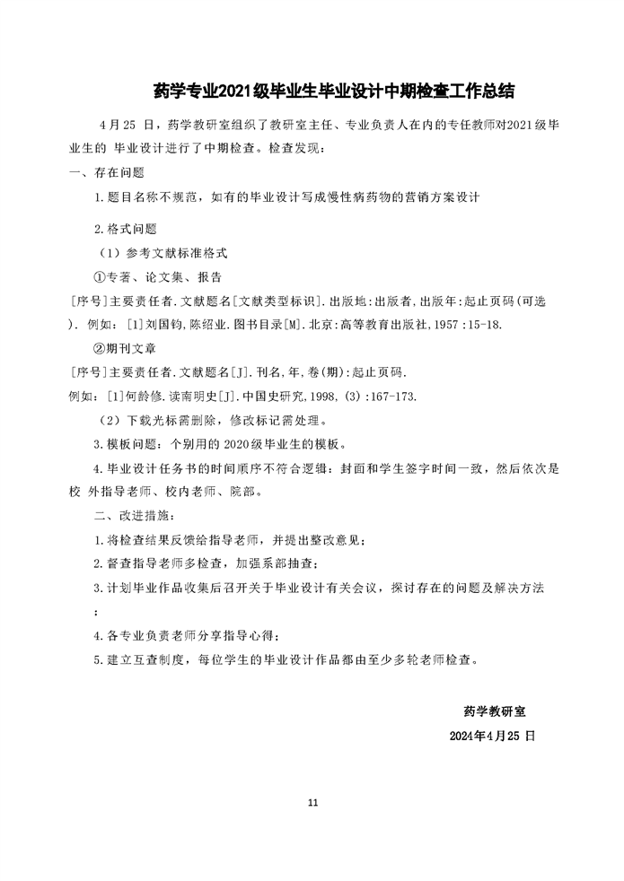 药学专业2021级学生毕业设计工作总结