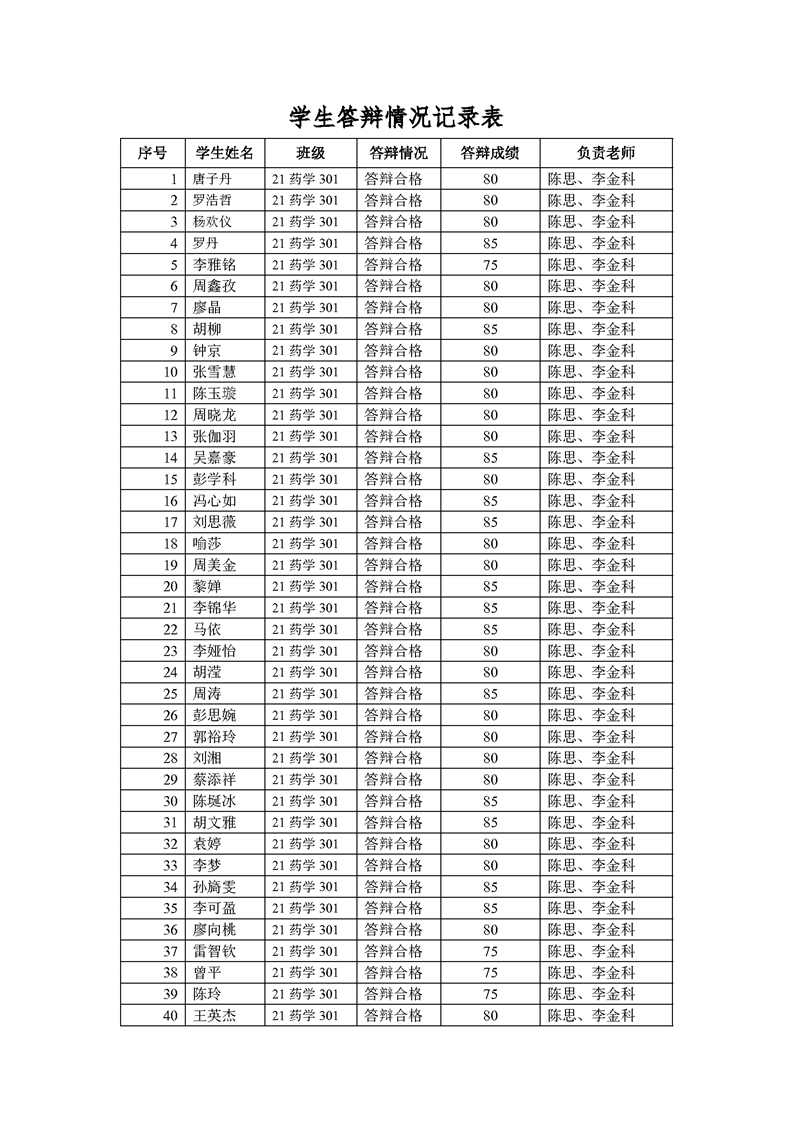 答辩成绩单