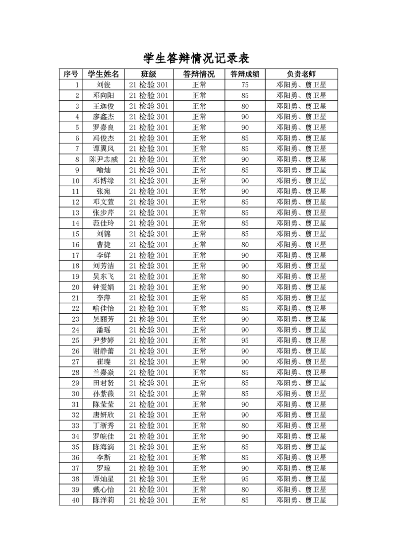 医学检验技术专业2021级学生毕业设计答辩成绩单