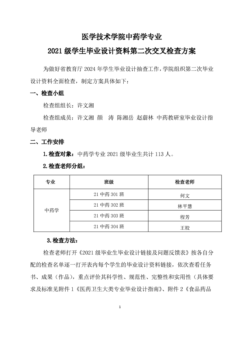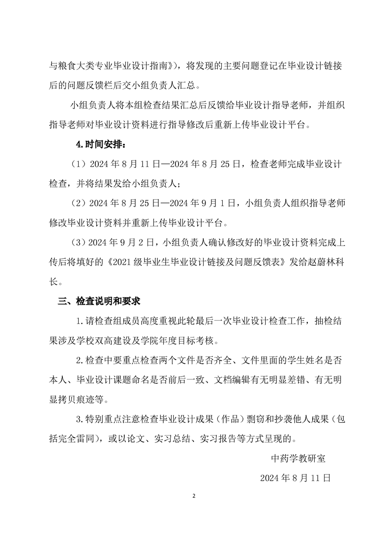 中药学专业2021级学生毕业设计第2次工作督导检查工作方案
