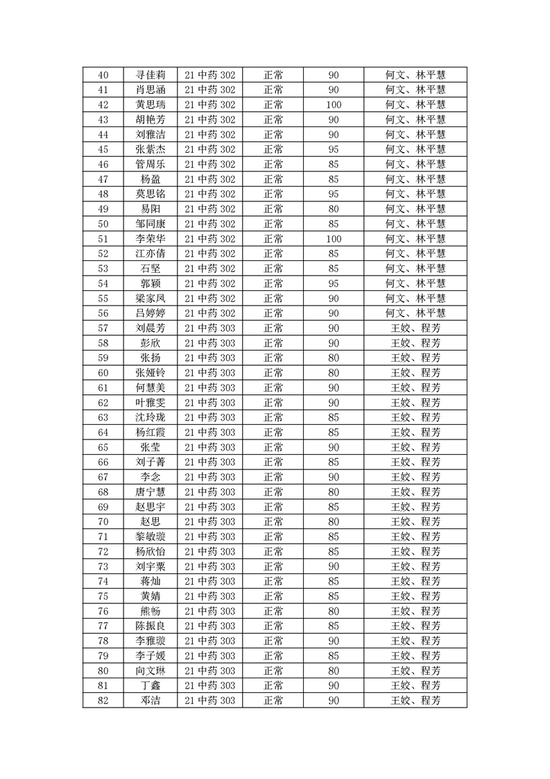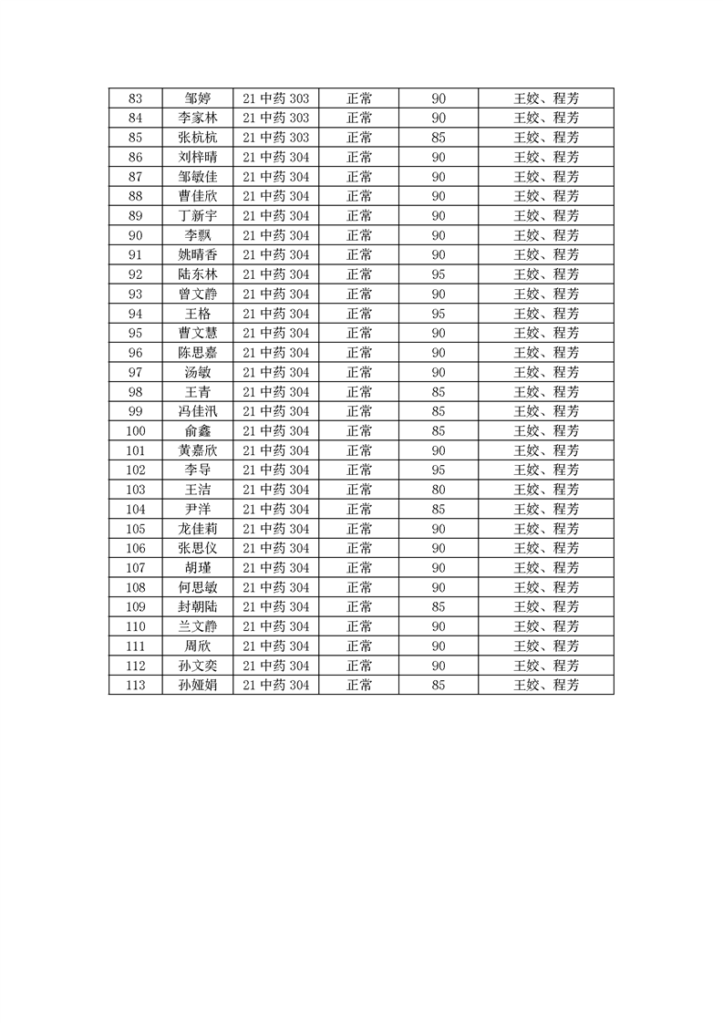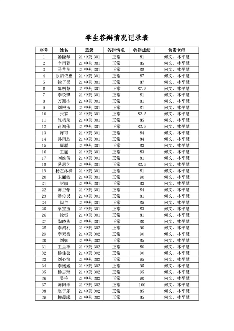 中药学专业 2021 级学生毕业设计答辩成绩单