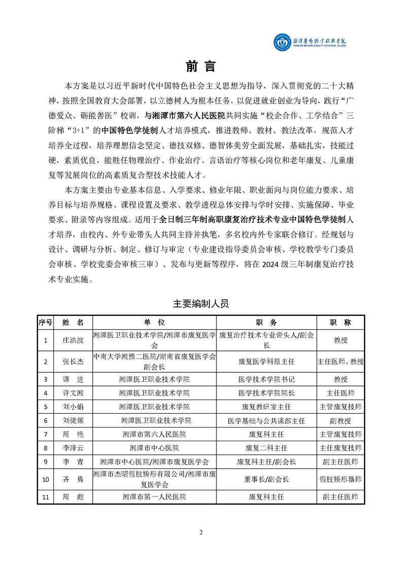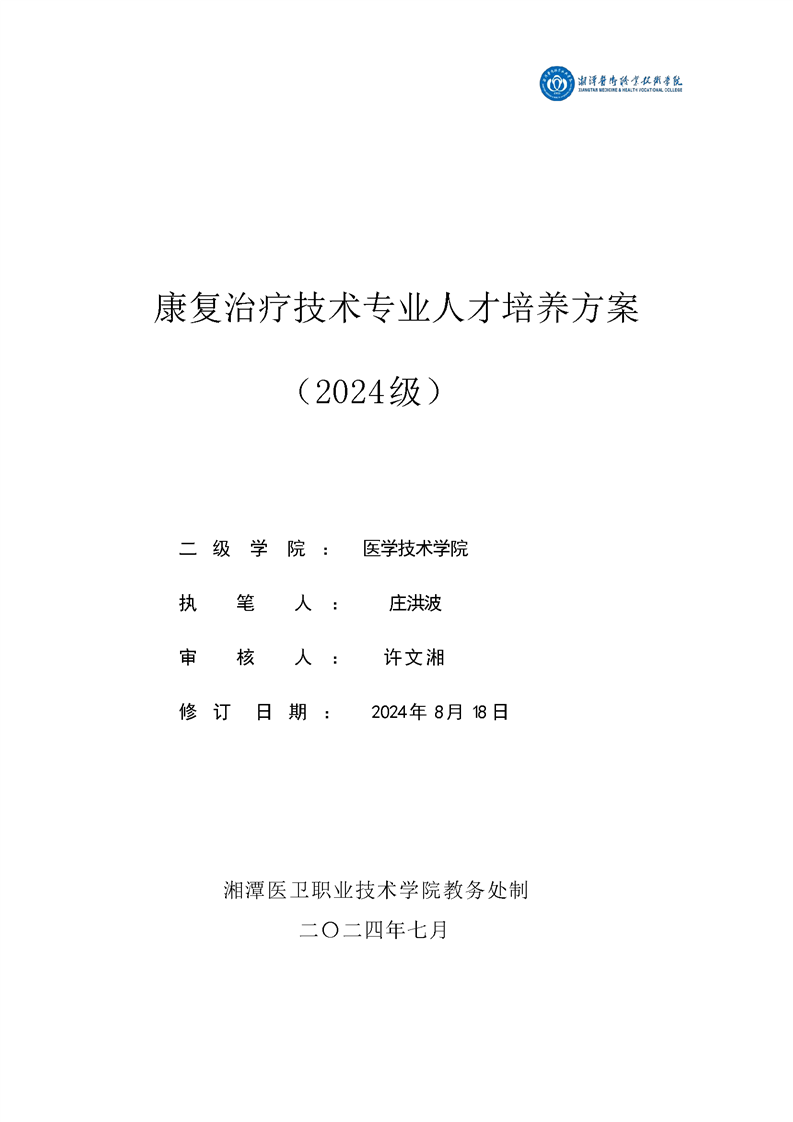2024级康复治疗技术专业人才培养方案