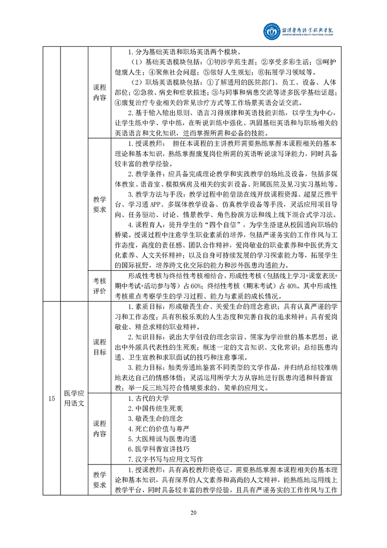 2020级康复治疗技术专业人才培养方案