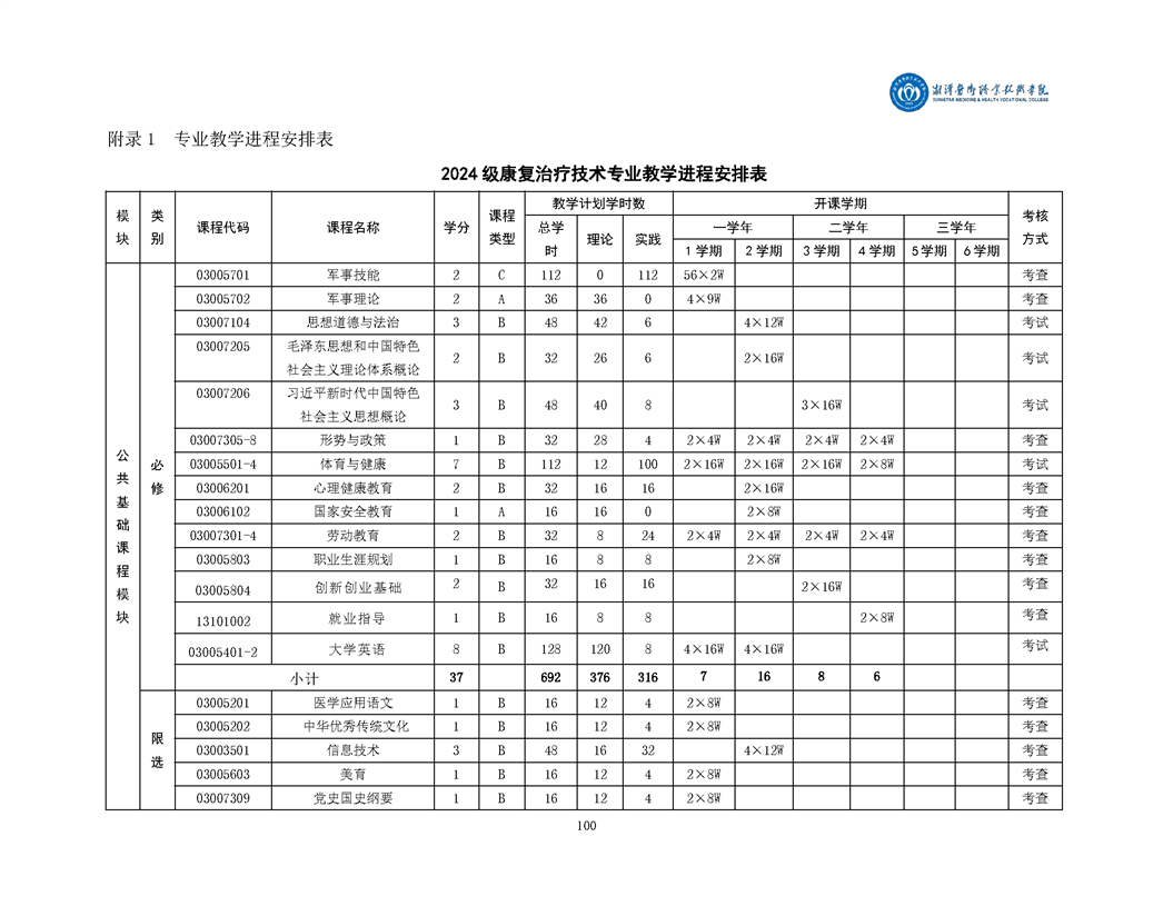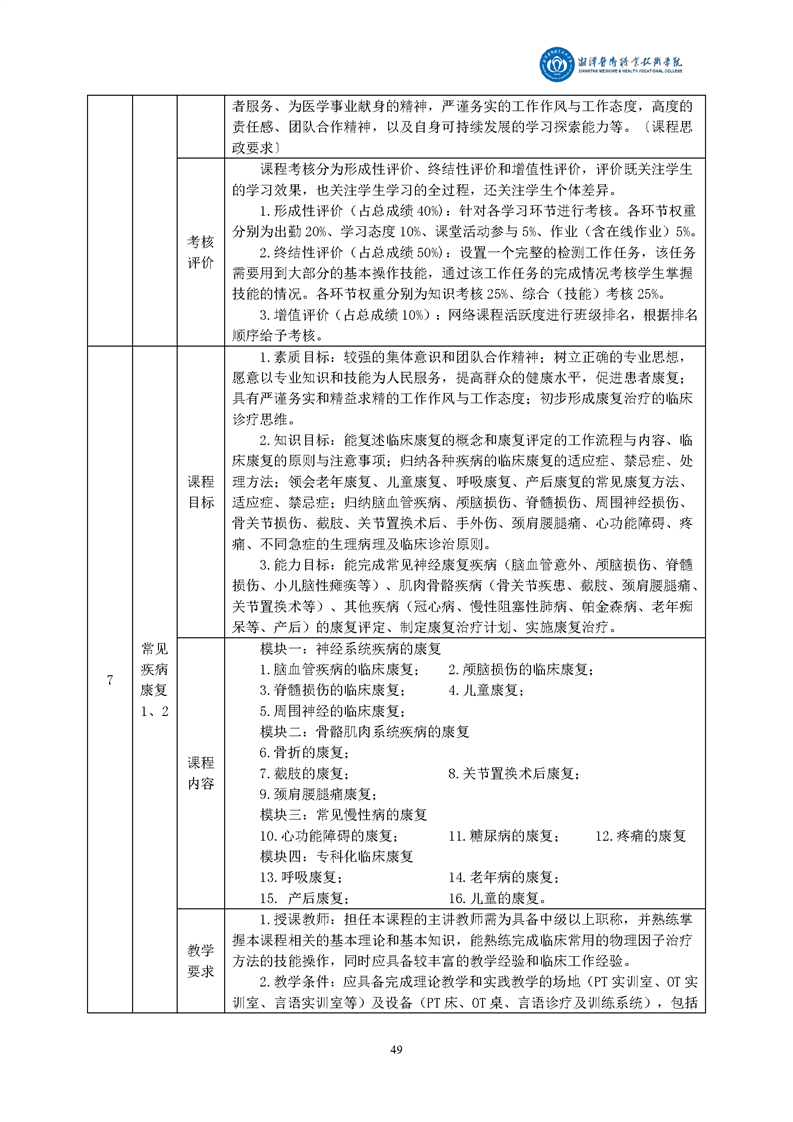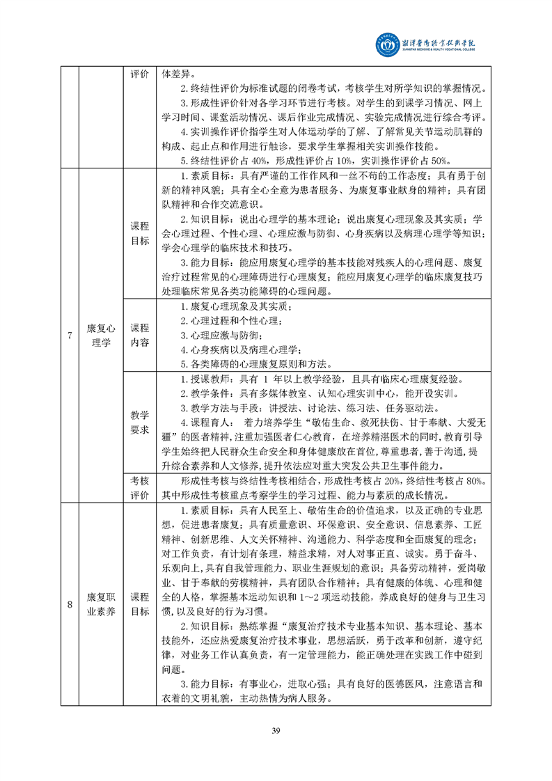 > 教务处 > 半岛(中国)专业人才培养方案 > 9、康复治疗技术专业