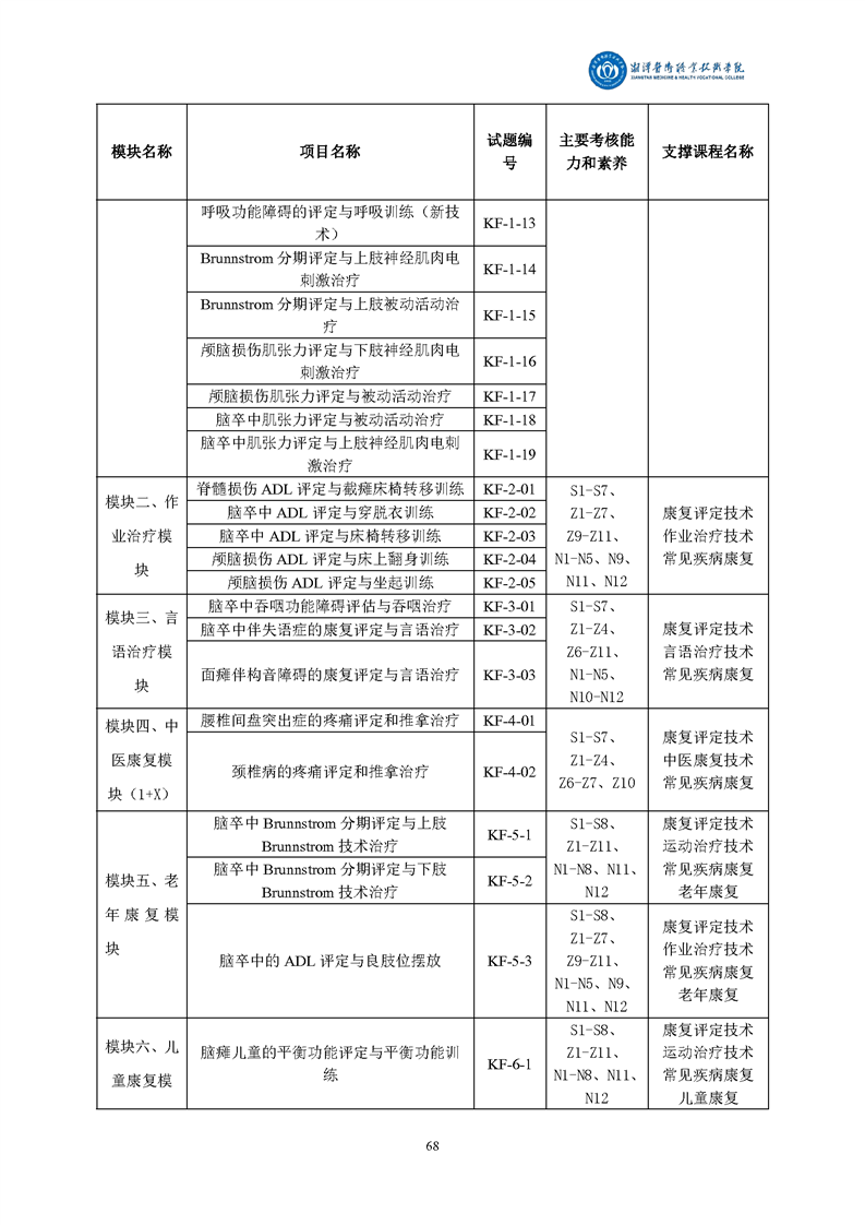 康复治疗技术专业技能考核标准和题库