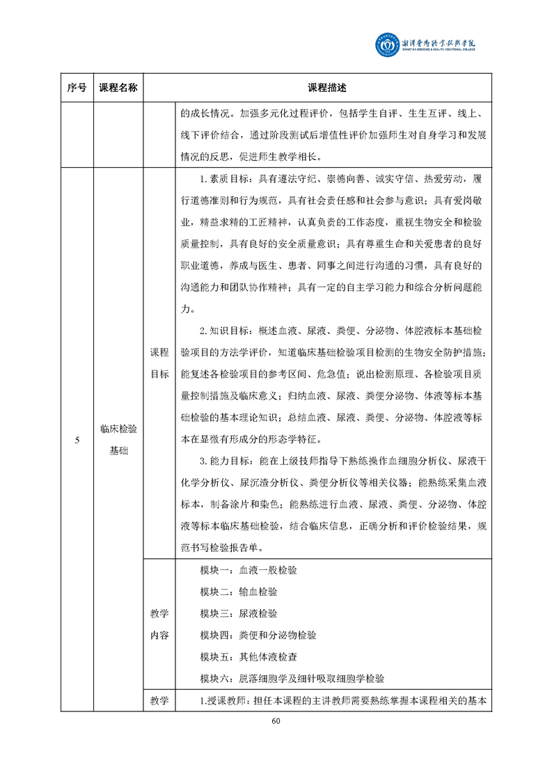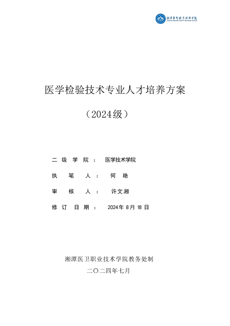 > 教务处 > 半岛(中国)专业人才培养方案 > 10、医学检验技术专业