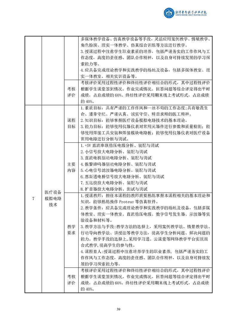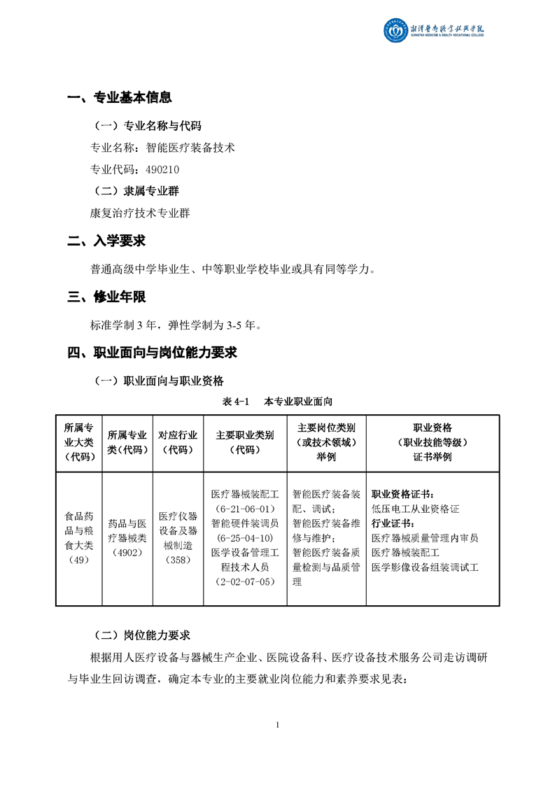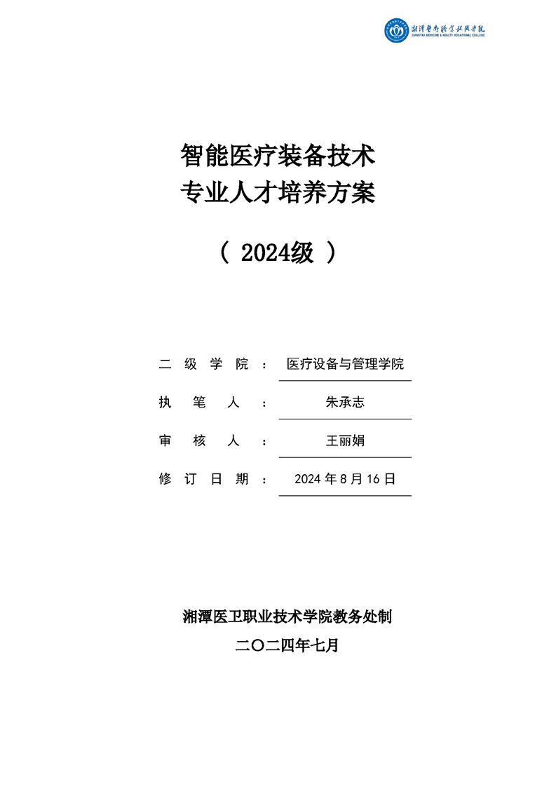 > 教务处 > 半岛(中国)专业人才培养方案 > 16、智能医疗装备技术专业