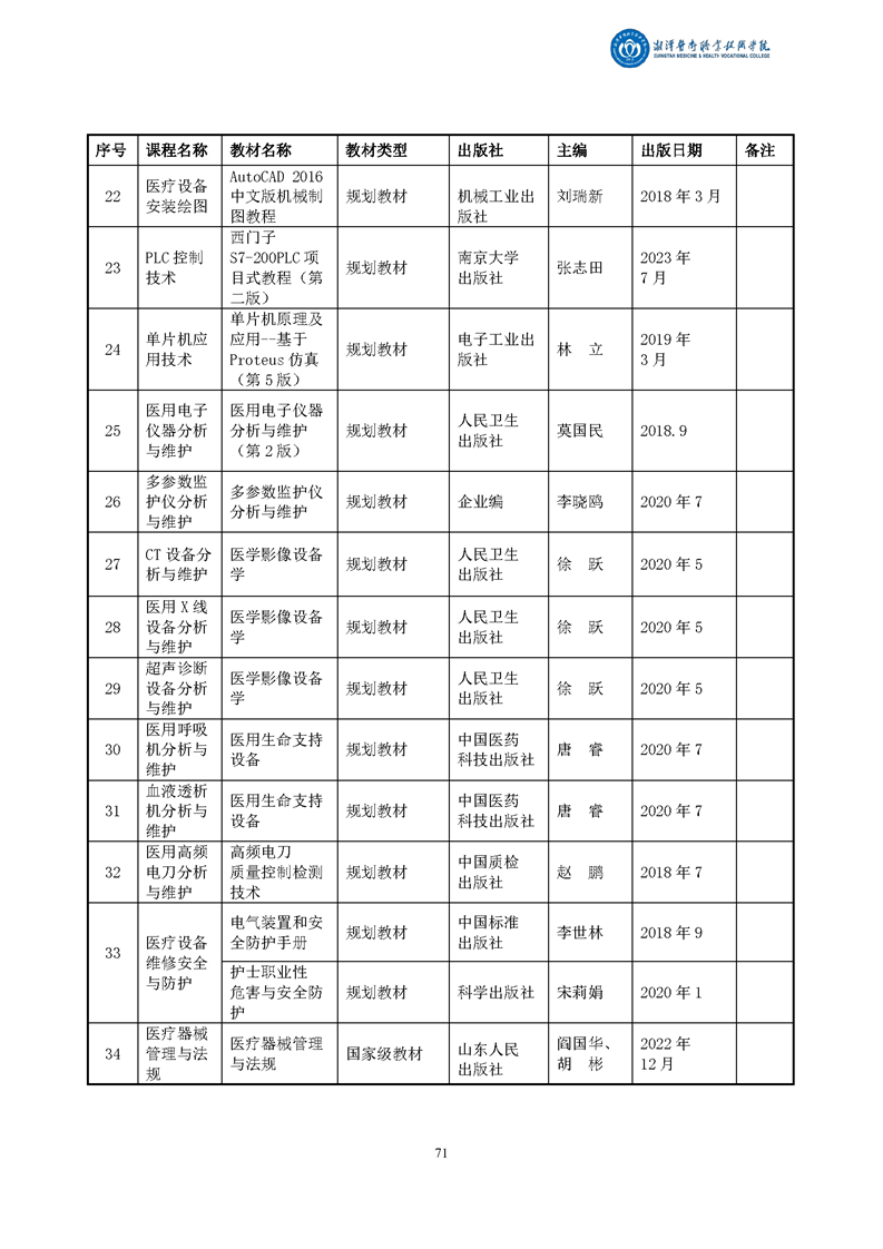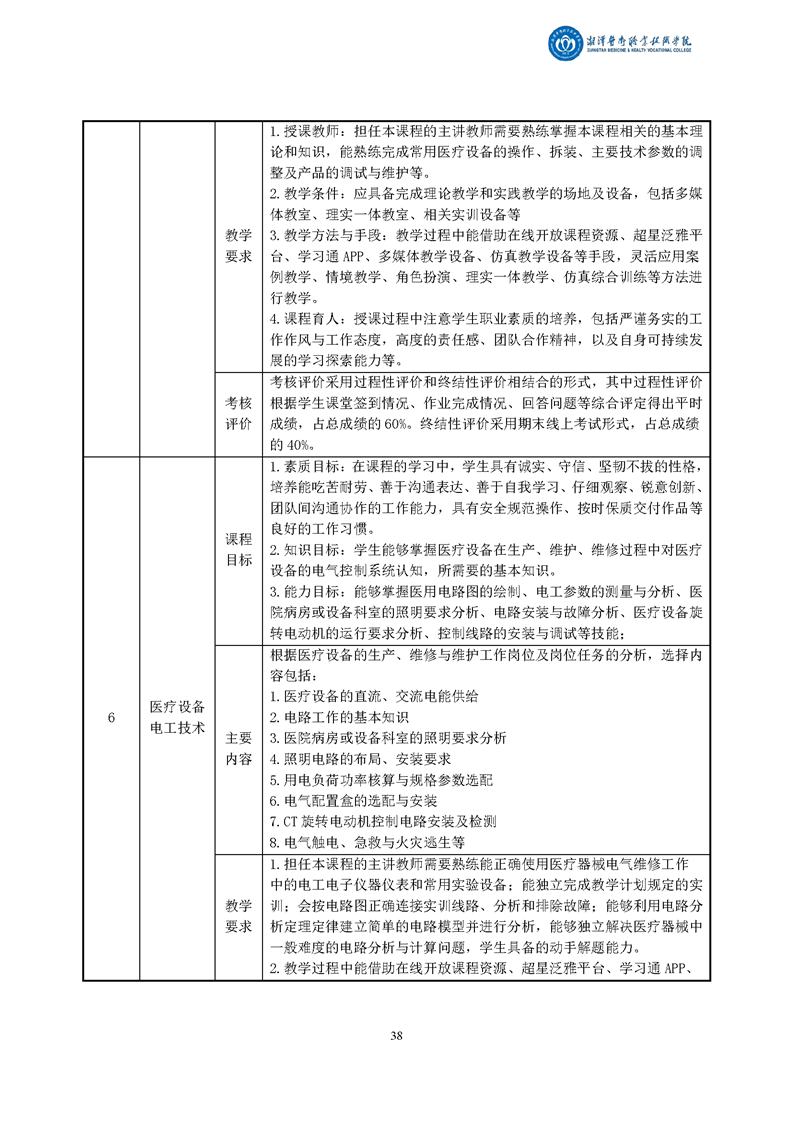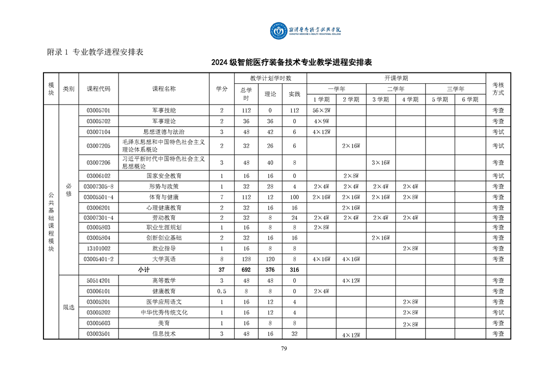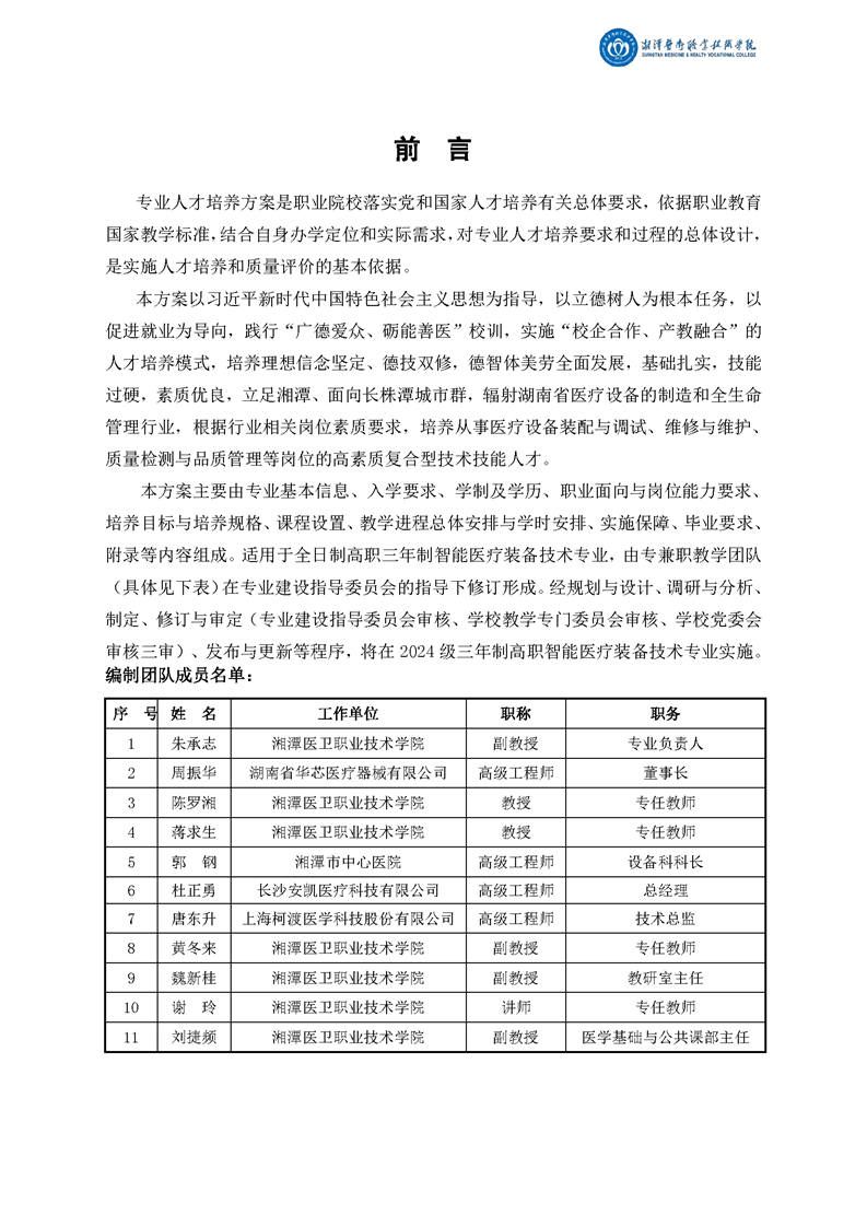 > 教务处 > 半岛(中国)专业人才培养方案 > 16、智能医疗装备技术专业