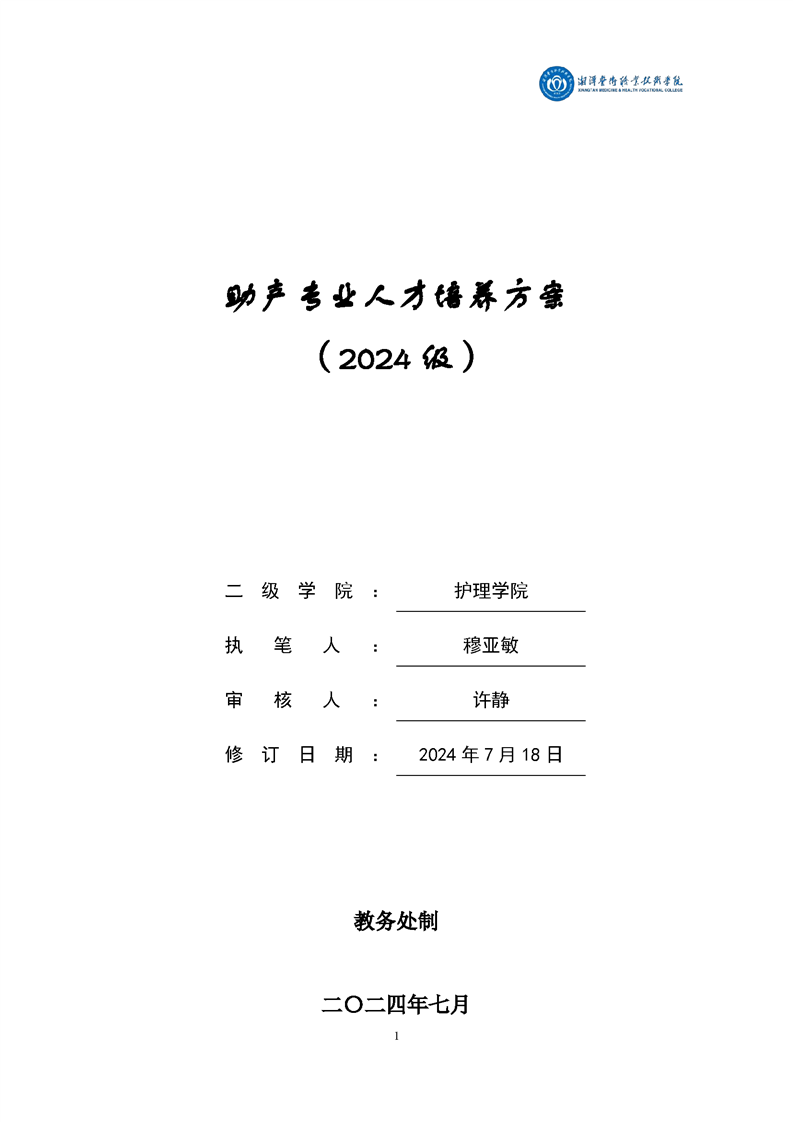 2024级助产专业人才培养方案