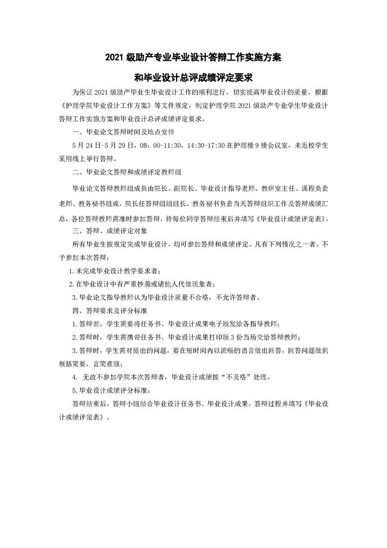2021级助产专业毕业设计答辩工作实施方案、成绩评定要求和工作总结