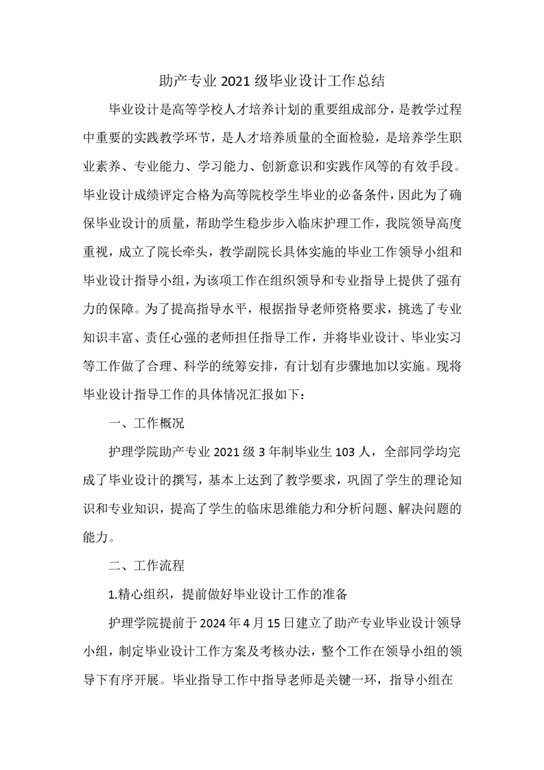 助产专业2021级学生毕业设计工作总结