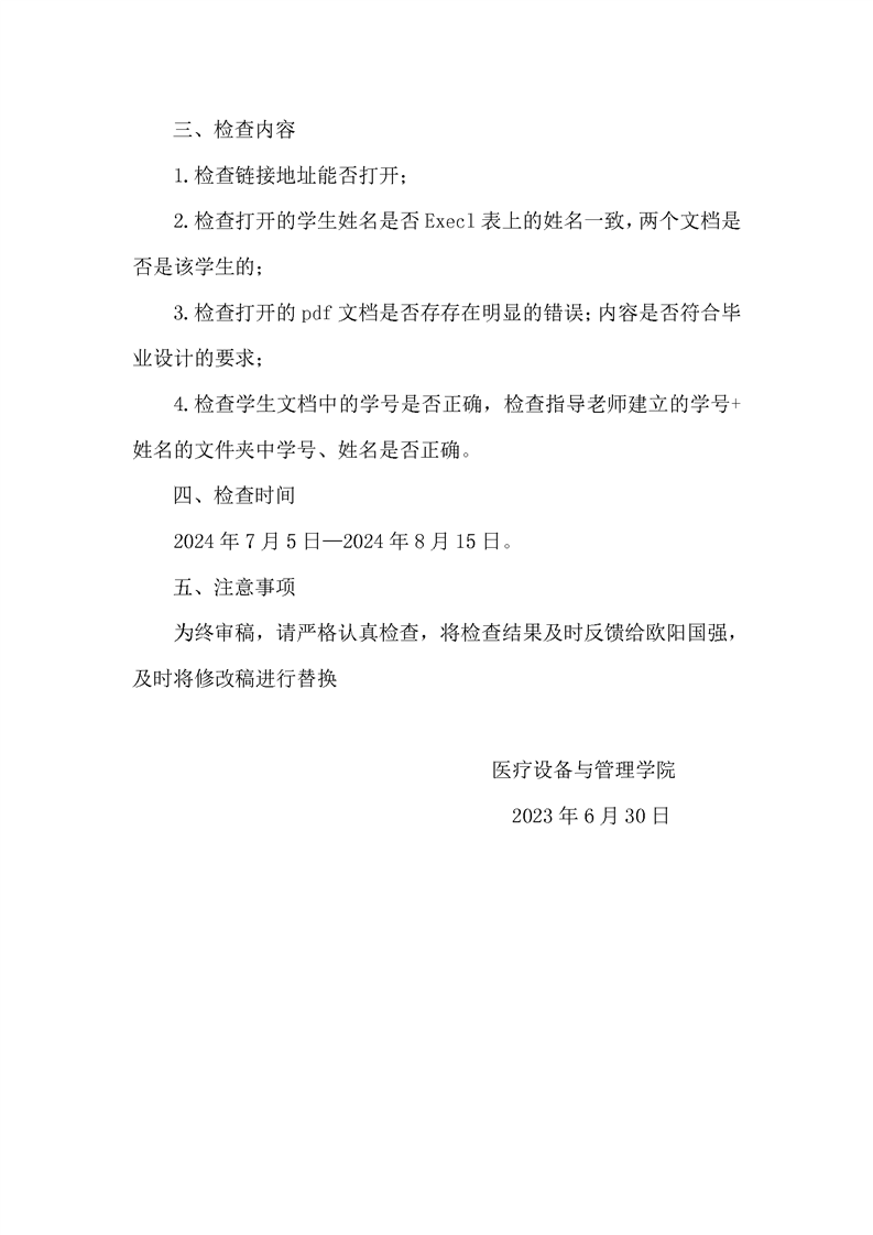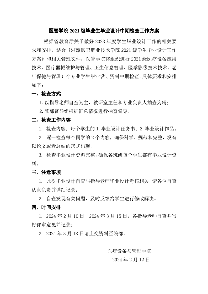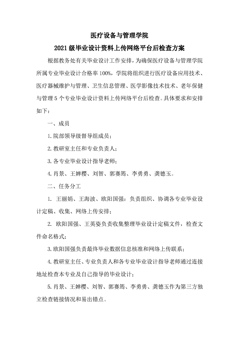 医管学院2021级学生毕业设计工作督导检查工作方案和督导检查情况总结