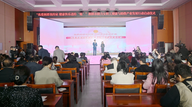 本网讯 3月18日,由市总工会主办的“我爱湘潭我的家 健康快乐送给‘她’——湘潭市助力女职工健康与助推产业发展行动”在我校正式启动。省总工会党组成员、省教育工会主席刘湘凌,市领导赵欢、陈若杨、孔畅明,我校校长廖晓燕等出席活动。