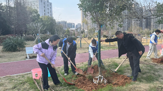 活动当天,植树现场一片热火朝天的劳动景象,大家分组行动,铲土填坑,挥锹培土,扶树浇水,每道工序都做得十分认真,一阵忙碌之后,一株株新栽树苗挺立在三月的和煦春风里,为校园又增添了一处靓丽的风景。