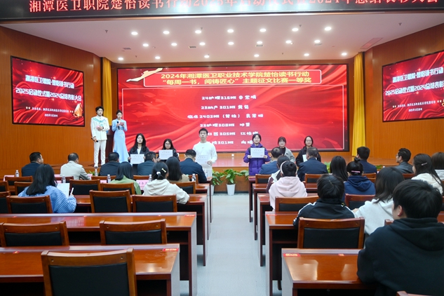 大会对2024年读书活动涌现的佼佼者进行表彰。22药学301班刘心语荣获湖南省“楚怡读书之星”称号,征文、诵读、摄影等赛事的获奖名单揭晓,涵盖师生四百余人。“是书籍让我看见更广阔的世界。”获奖代表、读书会会长易守根在发言中分享道。他号召同学们以书为友,在医道传承中汲取智慧,让书香成为医卫人最动人的精神底色。