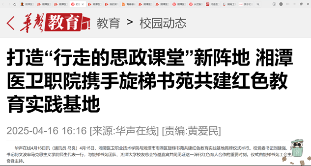 【华声在线】打造“行走的思政课堂”新阵地 湘潭医卫职院携手旋梯书苑共建红色教育实践基地