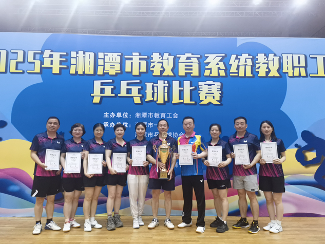 本网讯 4月19日至20日,由湘潭市教育局、湘潭市教育工会主办的2025年湘潭市教育系统“庆五一”教职工乒乓球比赛在湘潭市第一中学举行。经过激烈角逐,我校代表队最终获得混合团体县市区组冠军,肖琢言获得女子单打第四名,创下我校参加省市级比赛最好成绩。