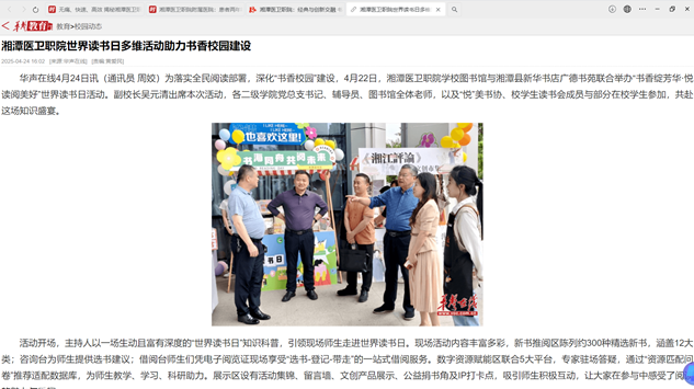 【华声在线】湘潭医卫职院世界读书日多维活动助力书香校园建设