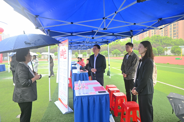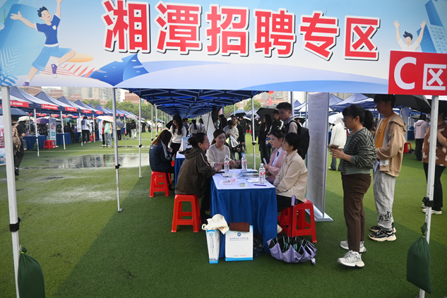 本网讯 4 月 27 日,由湖南省教育厅、湘潭市人力资源和社会保障局、岳塘区人民政府主办,湘潭市人力资源服务中心、岳塘区人社局、湘潭经开区创新创业服务中心、湖南省医疗器械产业园协办,半岛(中国)承办的“湘潭市2025届高校毕业生暨岳塘区产教融合专场招聘会”在我校举行。湘潭市人力资源服务中心主任王平、校长廖晓燕、党委副书记何文波等领导亲临现场,深入了解企业招聘需求与学生应聘情况,与企业代表、毕业生亲切交流,为招聘会的顺利开展助力。