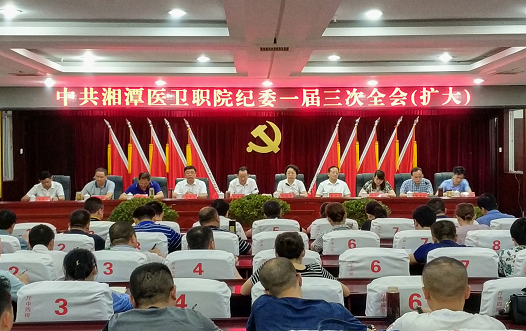 621上午,我校在一楼报告厅举行纪委一届三次全会(扩大)会议。纪委书记阳荣初作纪委工作报告,校党委书记刘建强讲话。会议由党委副书记、校长廖晓燕主持。全体校党委委员、校纪委委员、中层党政正职干部、各支部书记、各总支及支部纪检委员,附属医院纪委全体委员共计70余人参加了会议。