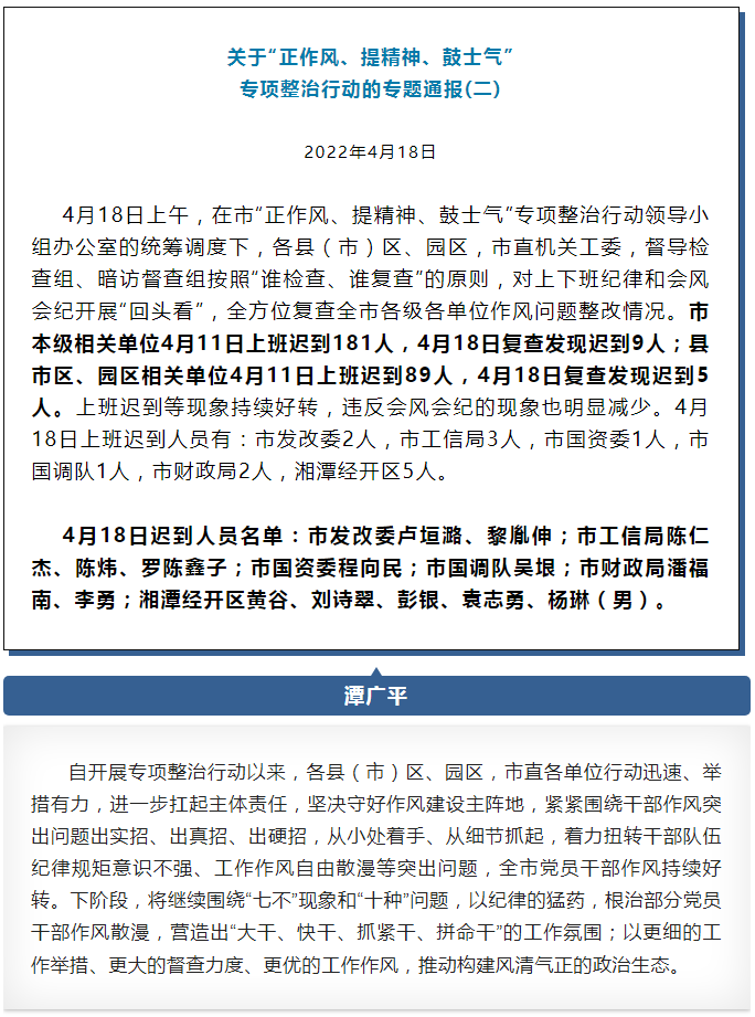 作风建设进行时 | 市专项整治行动领导小组办公室通报上班迟到等工作作风问题(二)