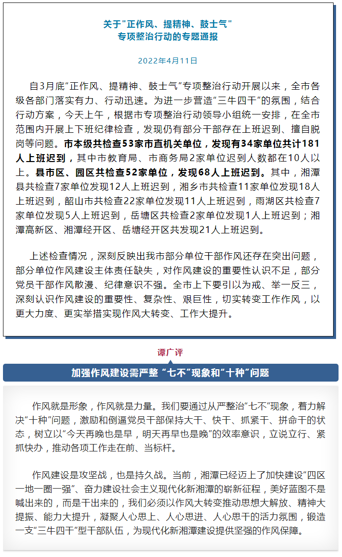 作风建设进行时 | 市专项整治行动领导小组办公室通报上班迟到等工作作风问题
