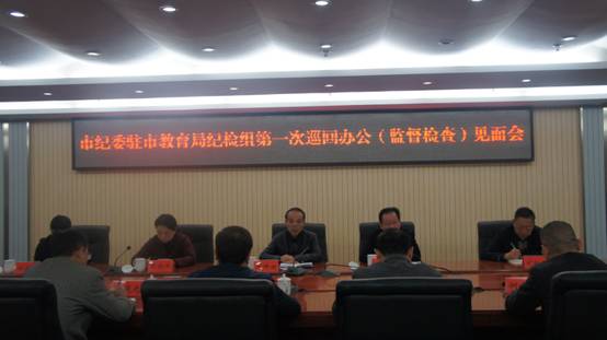 1115,市纪委驻教育局纪检组组长、市教育局党委委员刘件明一行7人到我校进行监督检查。这是派驻纪检组成立以来,多次暗访监督我校工作并交办问题线索后,第一次正式到我校巡回办公。