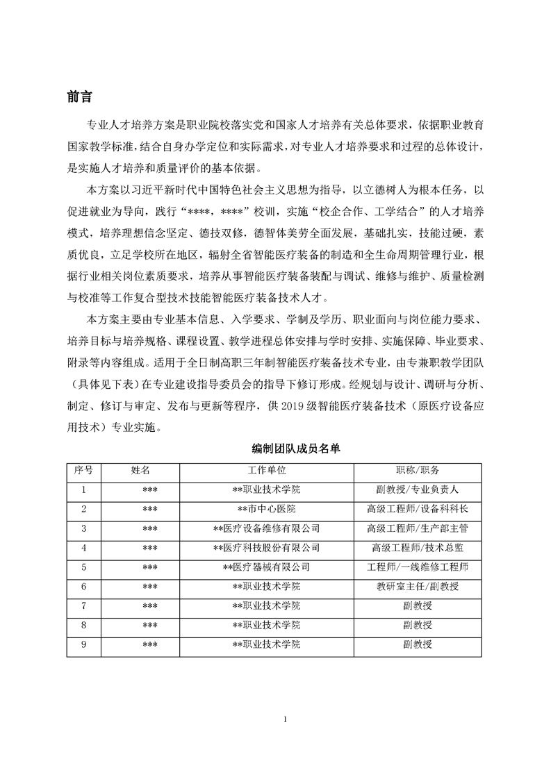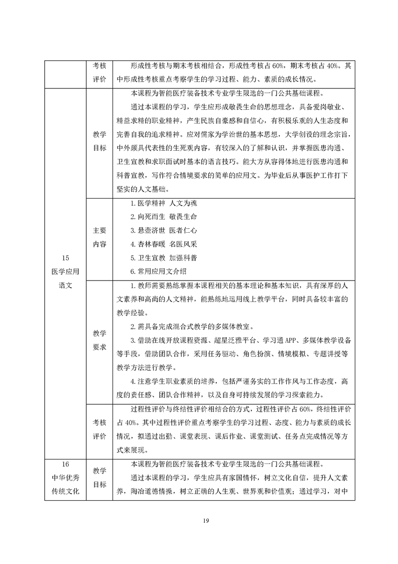 2019级智能医疗装备技术专业人才培养方案