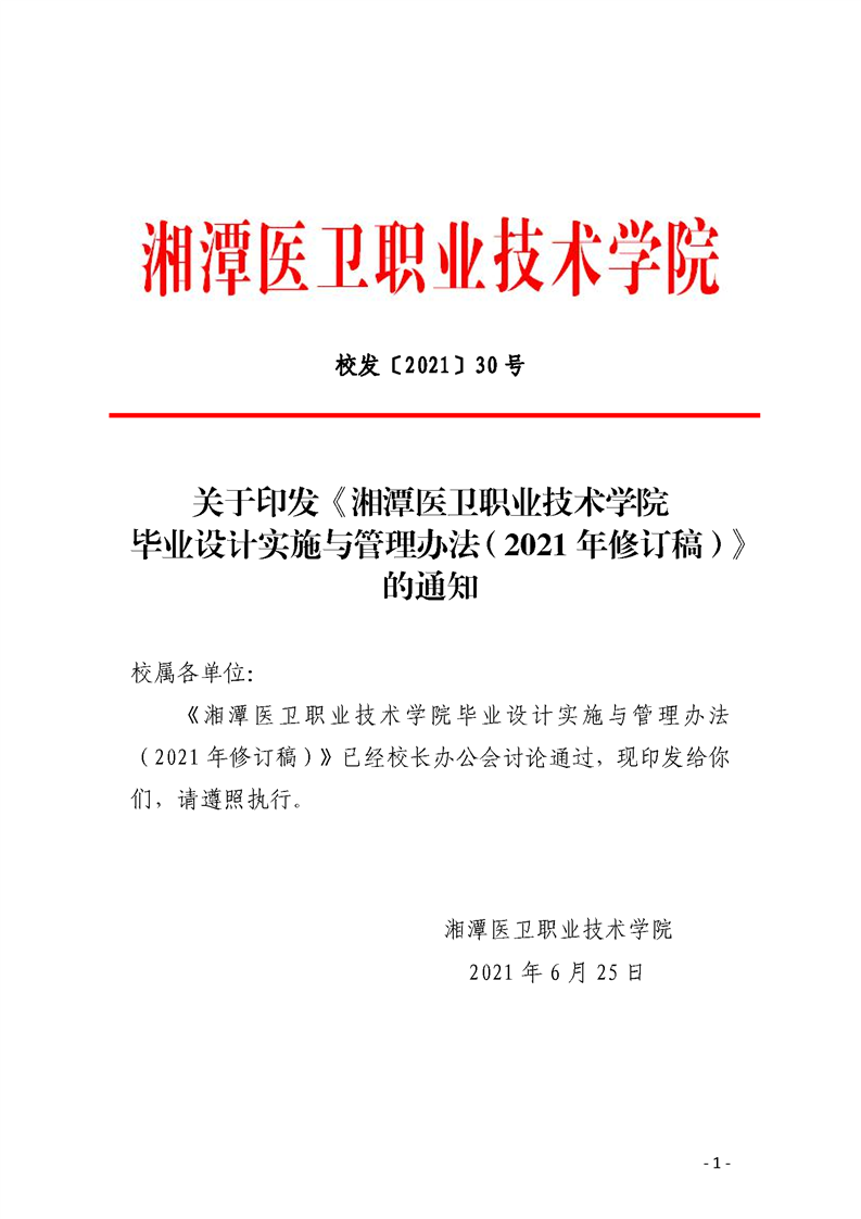 关于印发《半岛(中国)毕业设计实施与管理办法(2021年修订稿)的通知