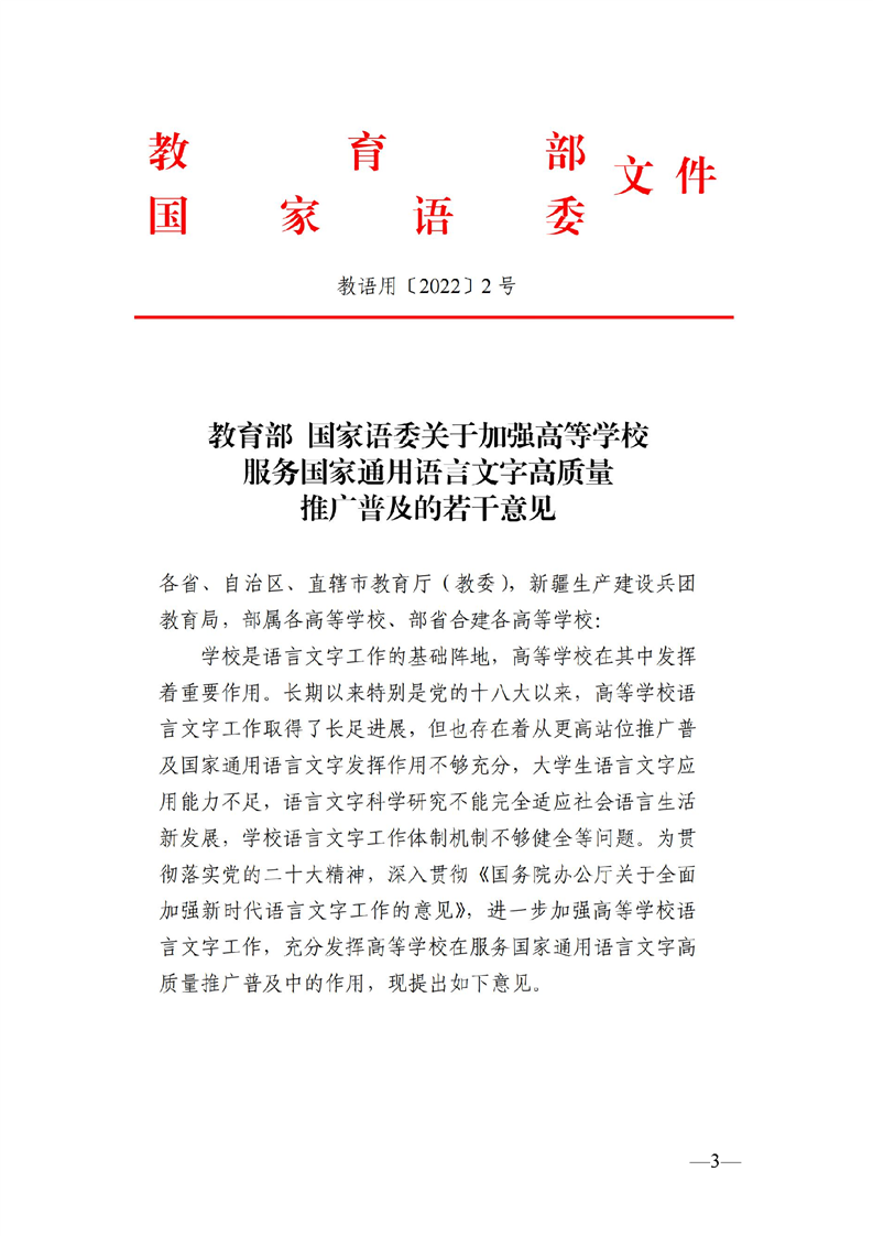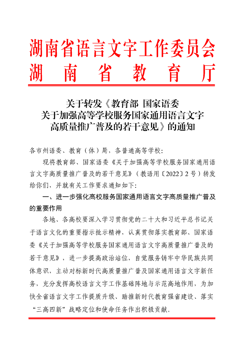 关于转发《教育部国家语委关于加强高等半岛平台服务国家通用语言文字高质量推广普及的若干意见》的通知正文