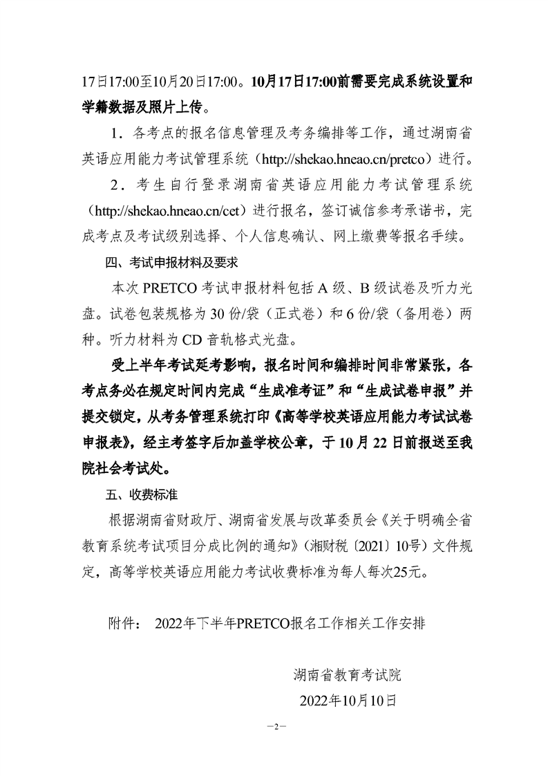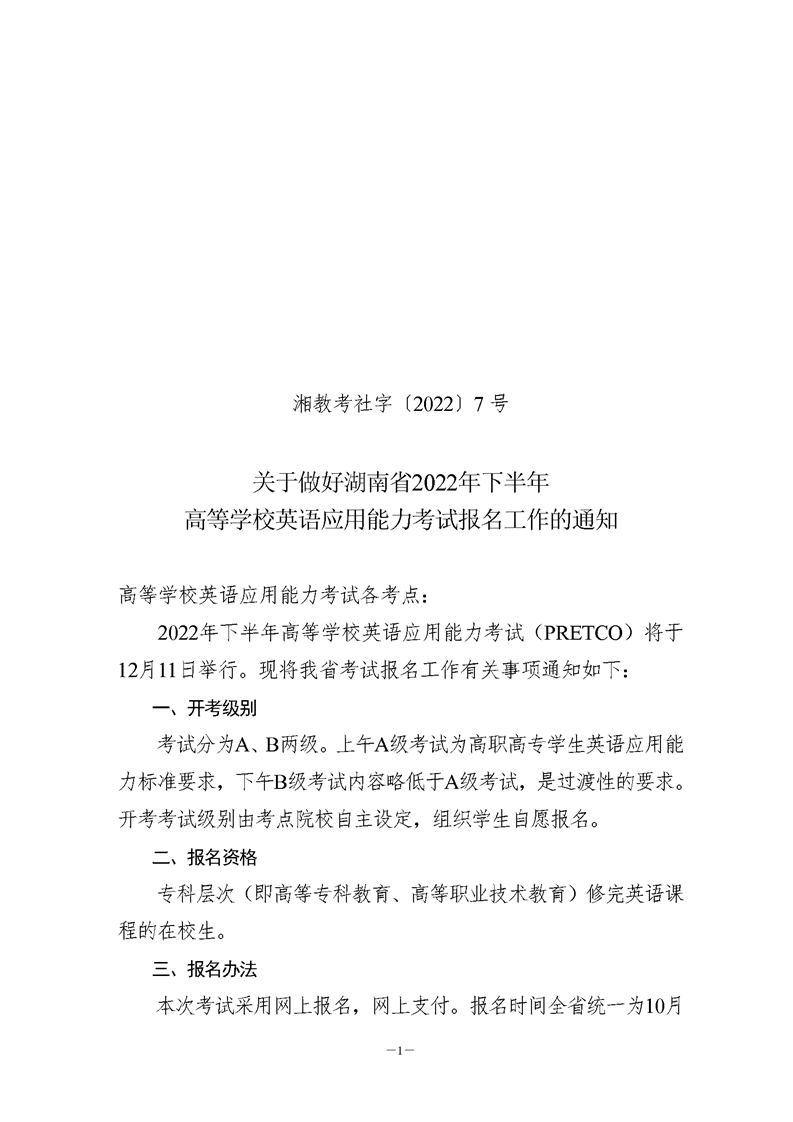 关于做好2022年下半年英语应用能力考试报名工作的通知湘教考社字〔2022〕7号