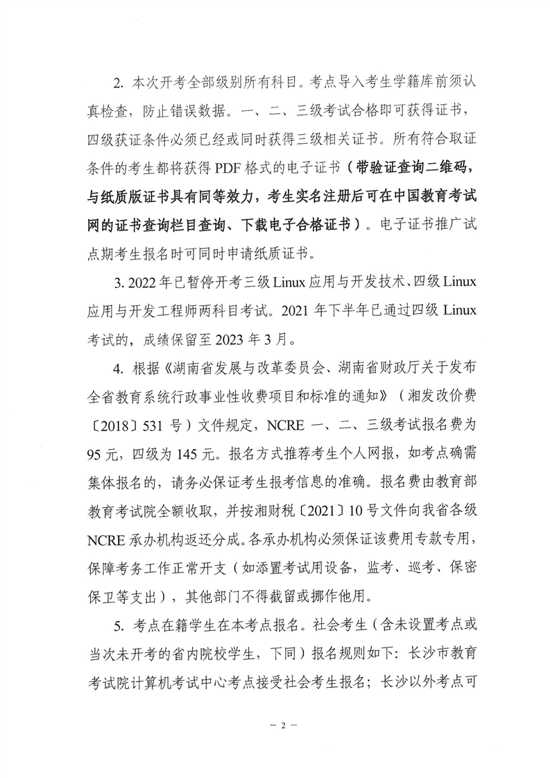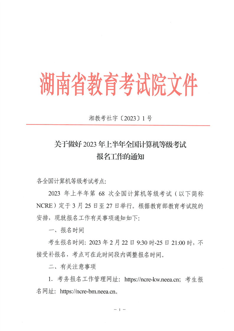 2023年上半年全国计算机等级考试报名工作的通知湘教考社字〔2023〕1号