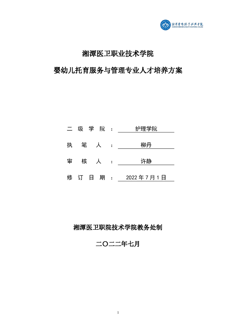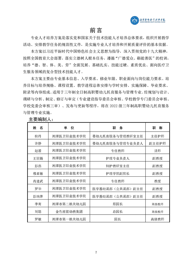 2022婴幼儿托育服务与管理专业人才培养方案