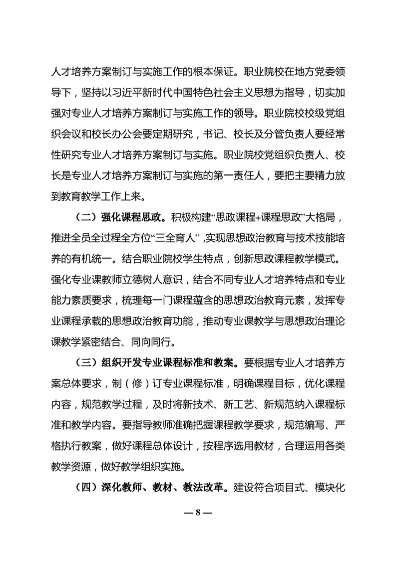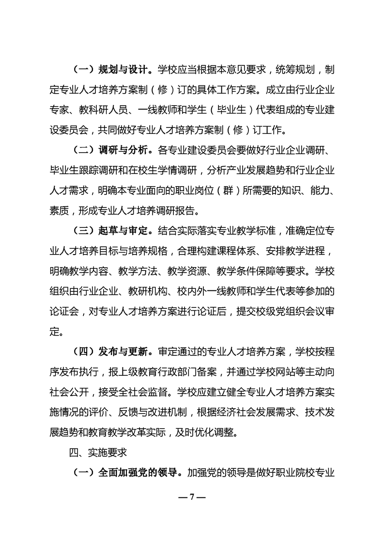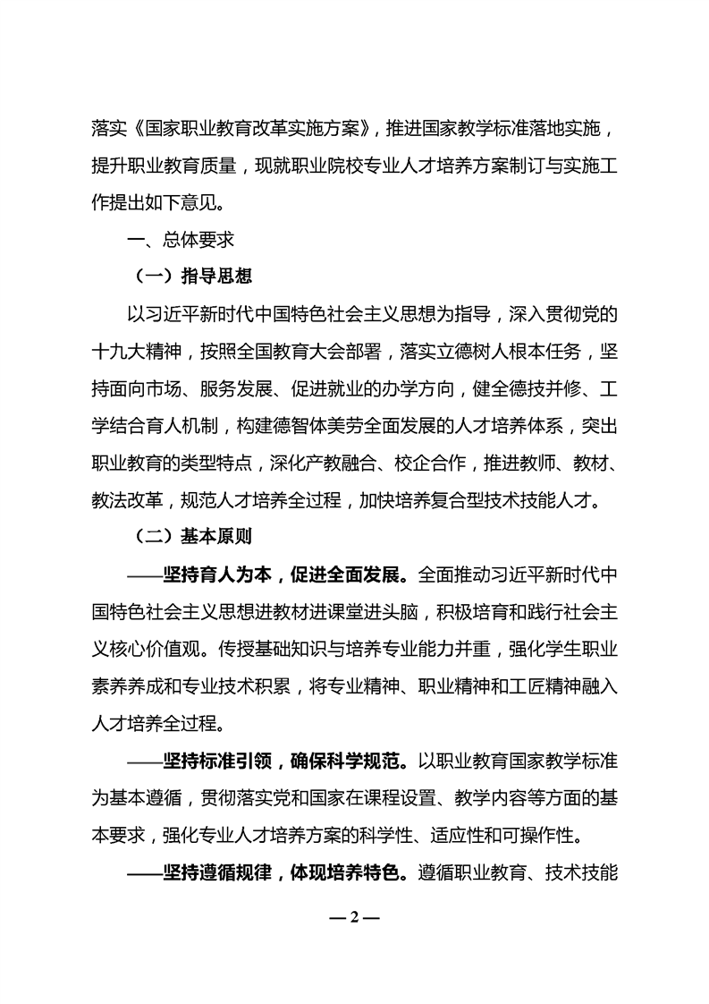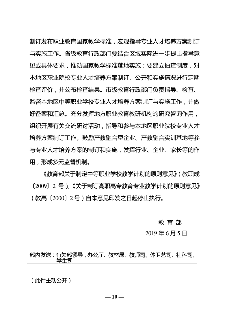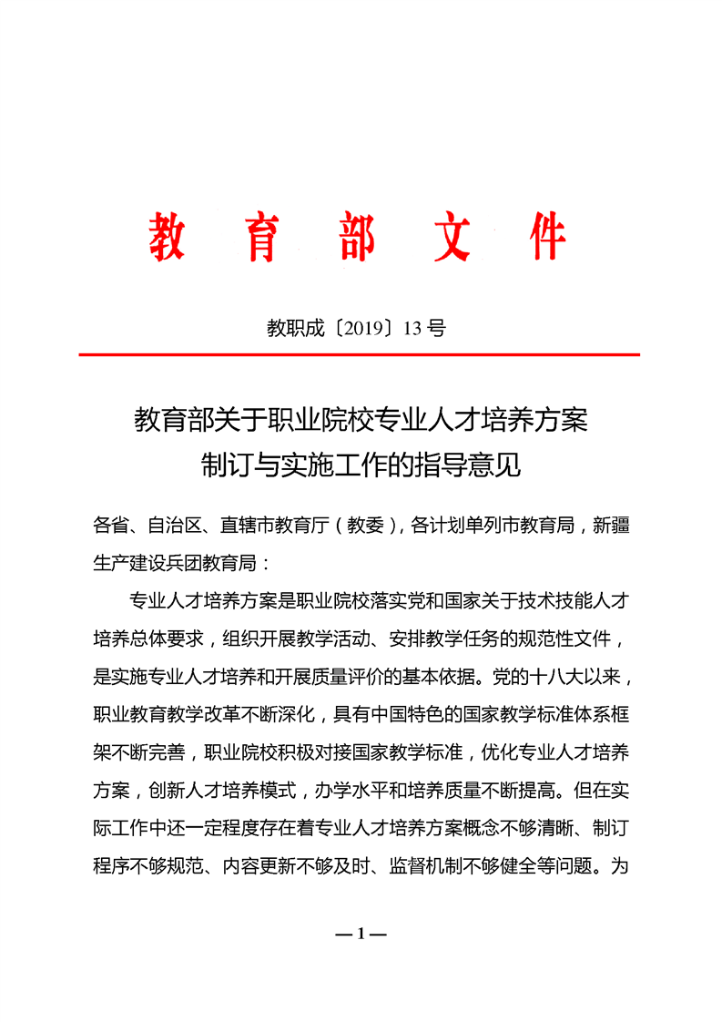 教职成〔2019〕13号-关于职业院校专业人才培养方案制订与实施工作的指导意见
