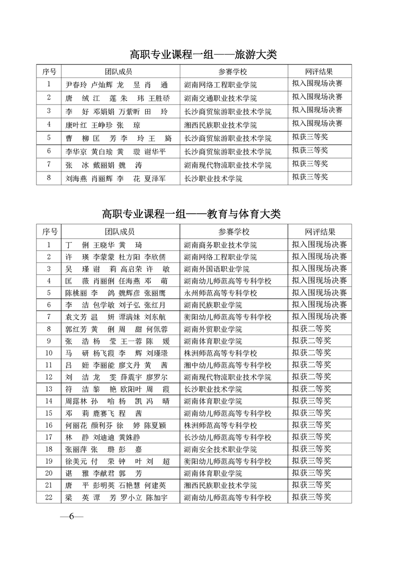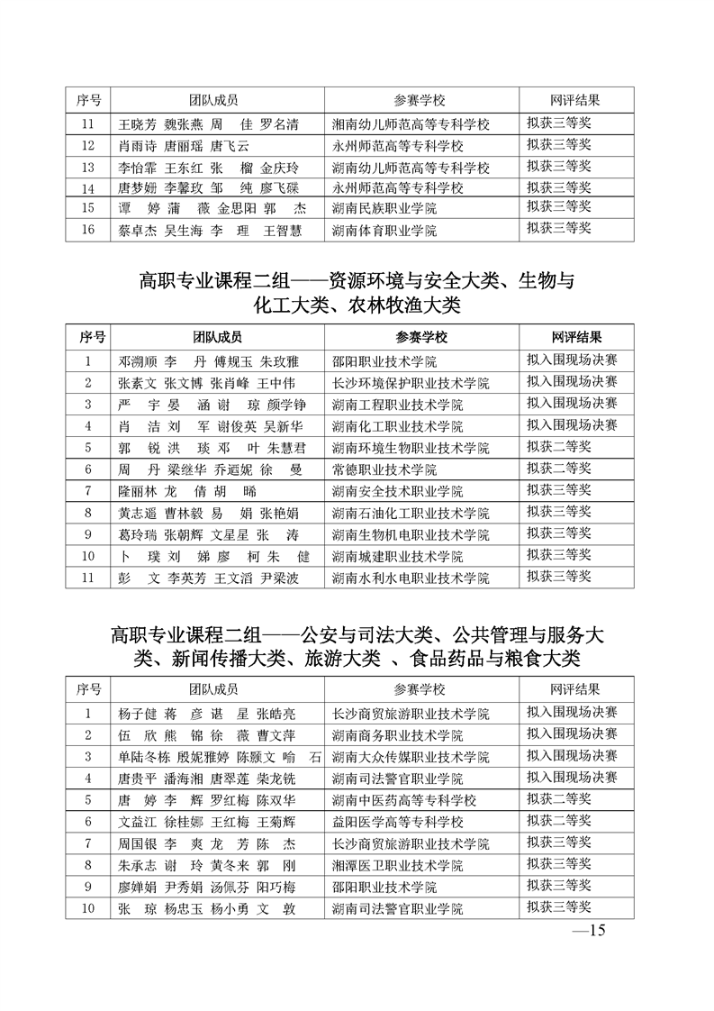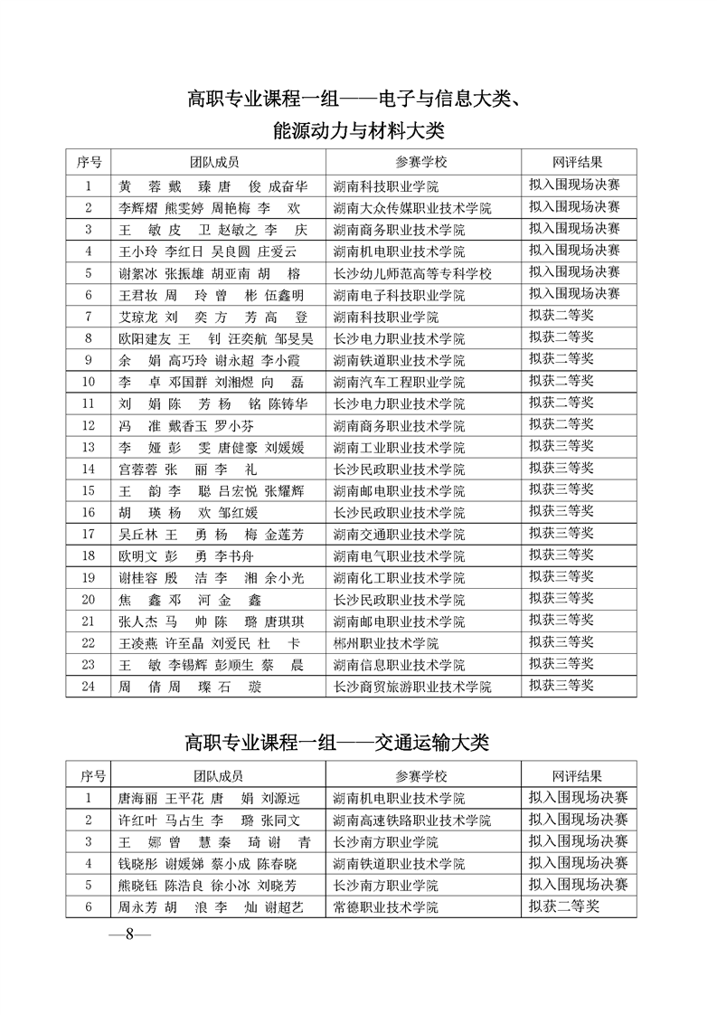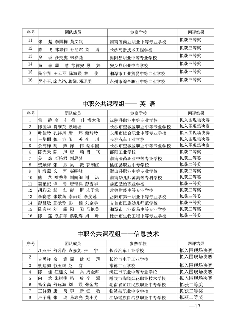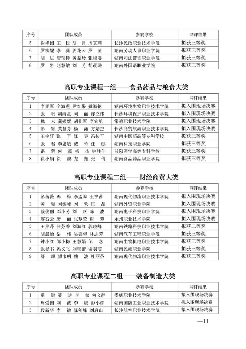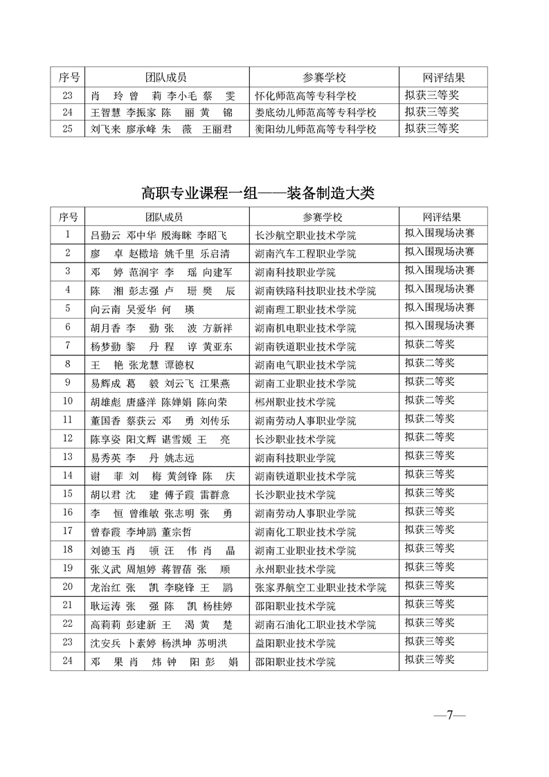 2023 年“楚怡杯”湖南省职业院校教师职业能力竞赛教学能力比赛入围现场决赛及拟获二、三等奖团队公示