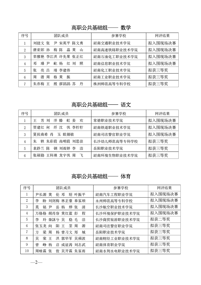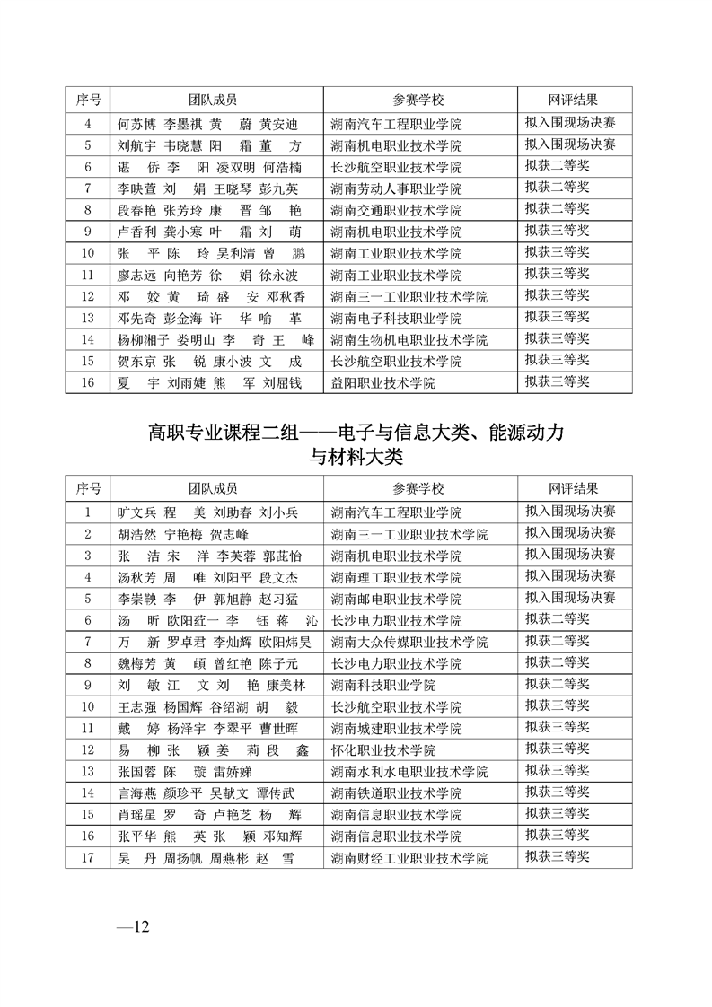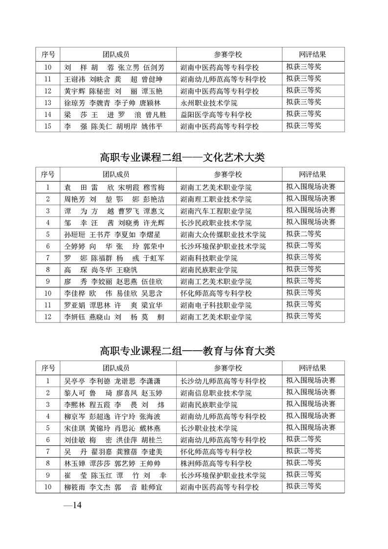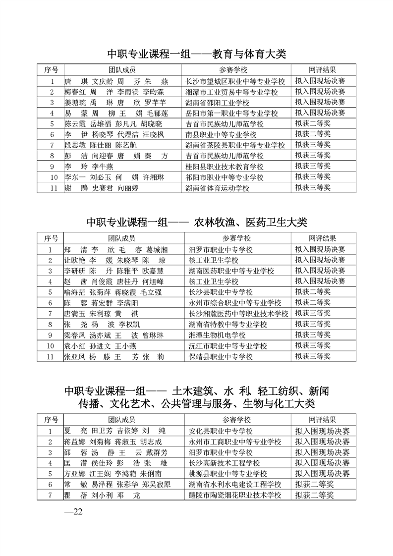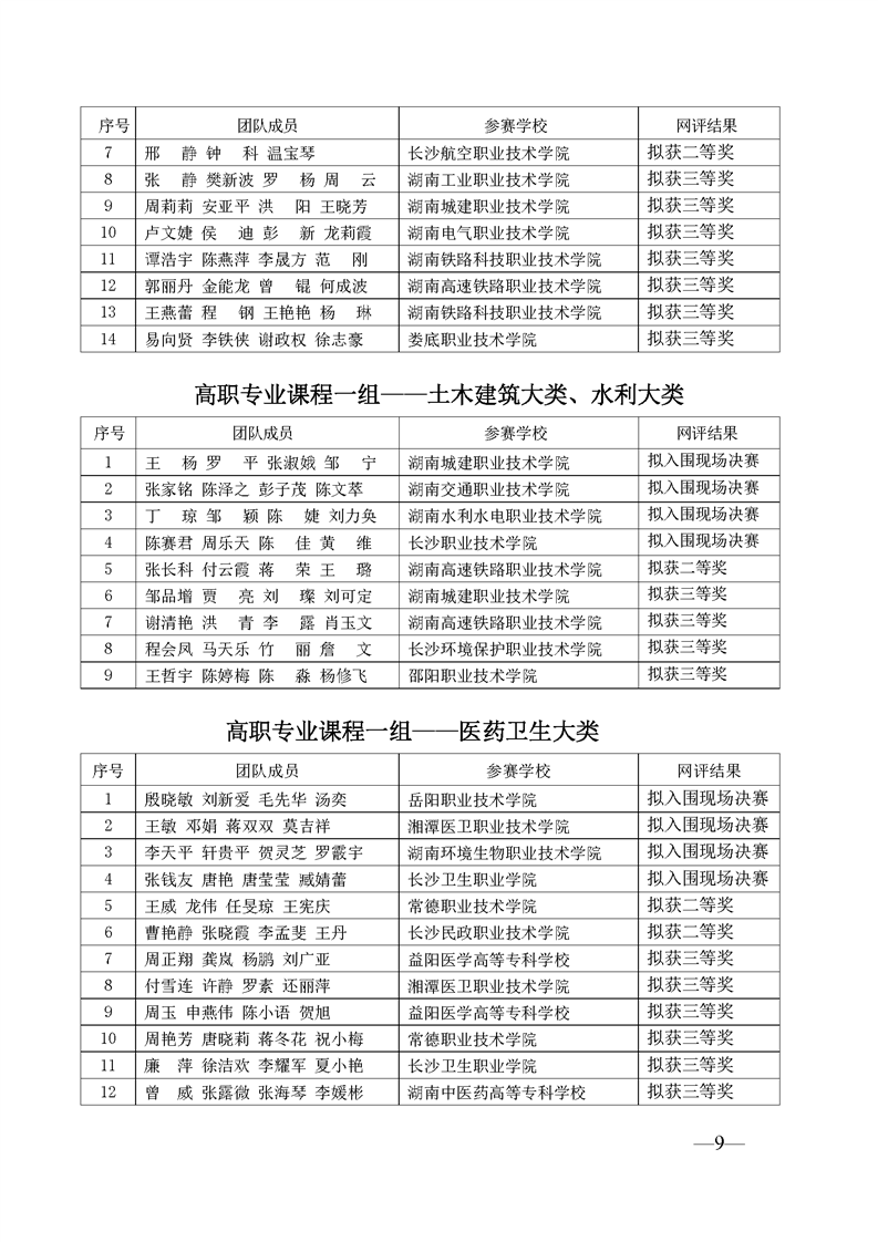 2023 年“楚怡杯”湖南省职业院校教师职业能力竞赛教学能力比赛入围现场决赛及拟获二、三等奖团队公示